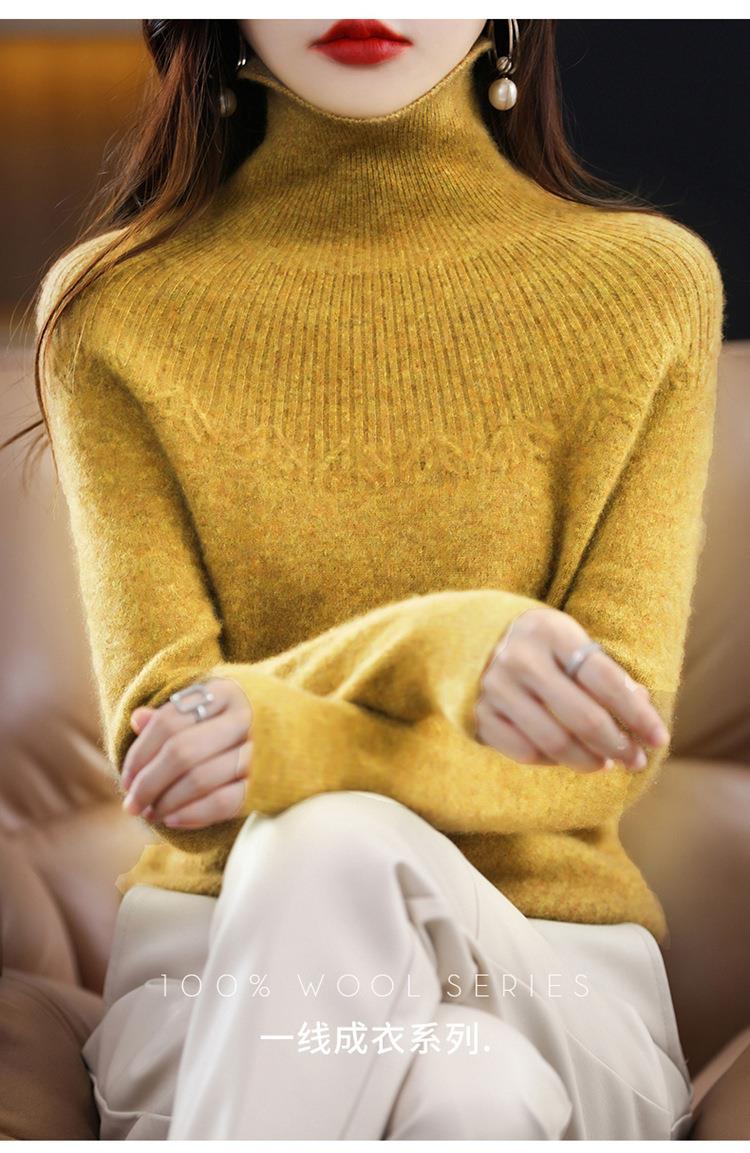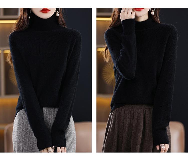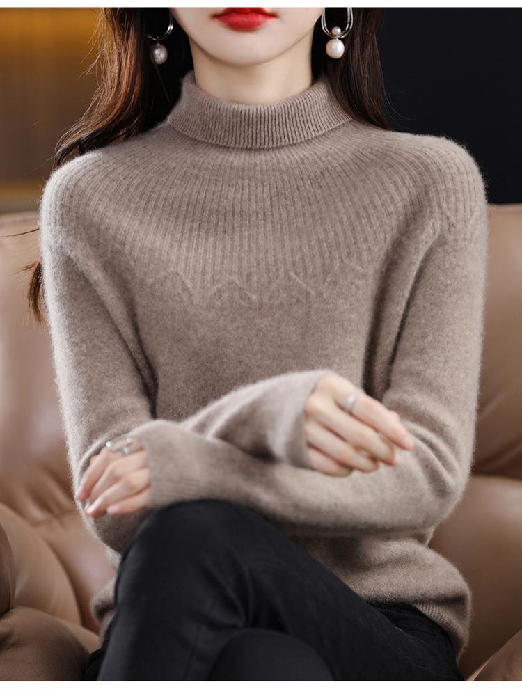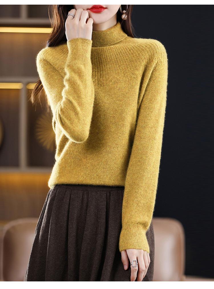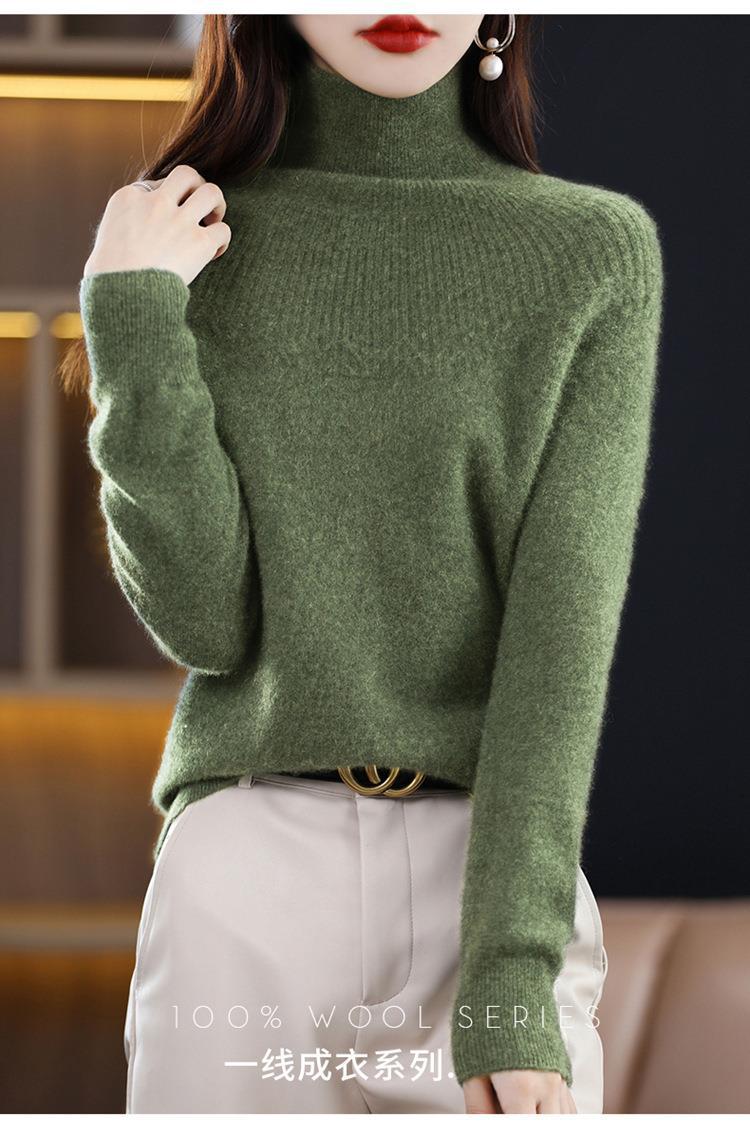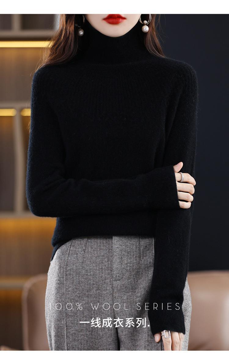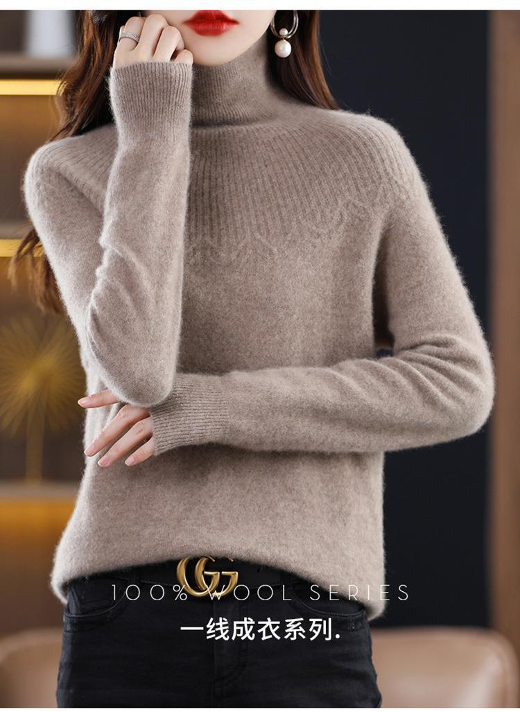 Suéter de Lana Nueva para Mujer Otoño/Invierno 25, Tejido Listo para Usar de Cuello Alto Suelto, Camiseta Base Adelgazante