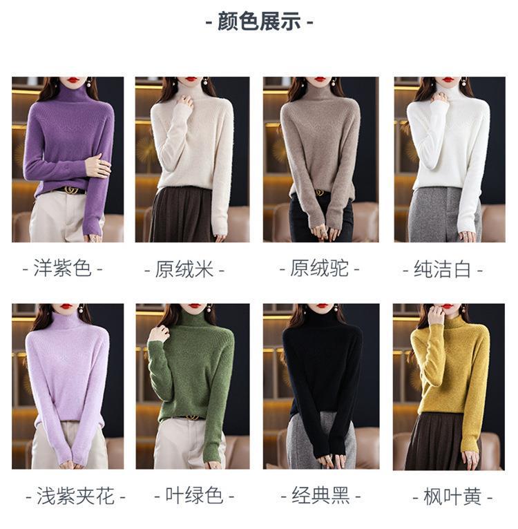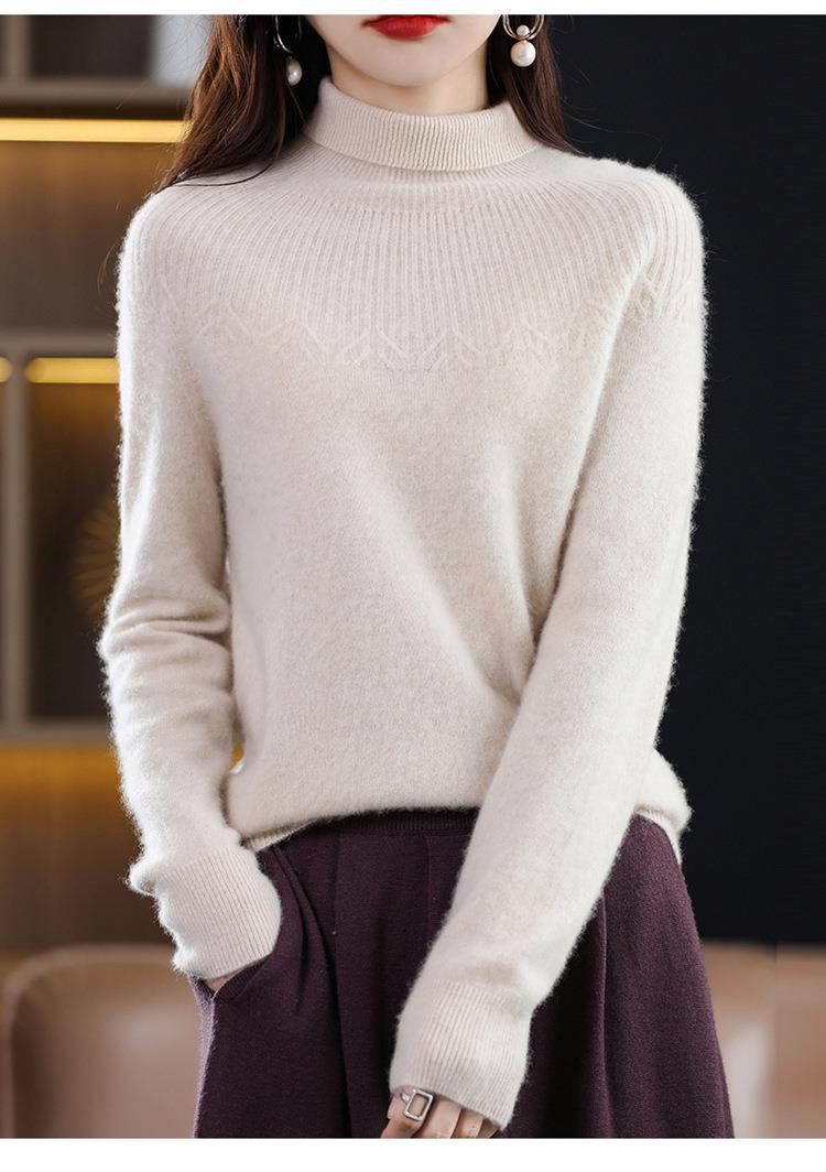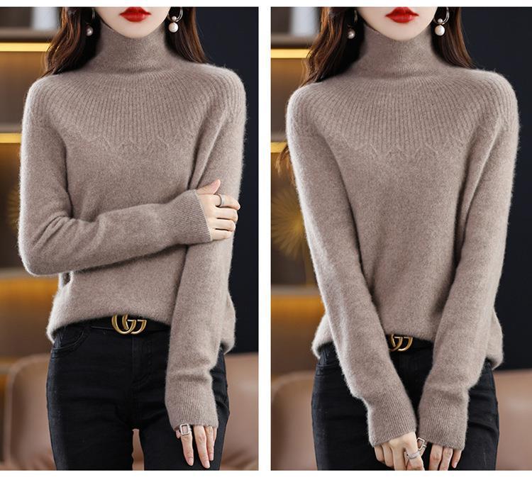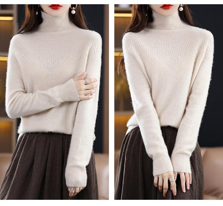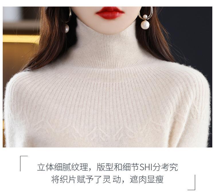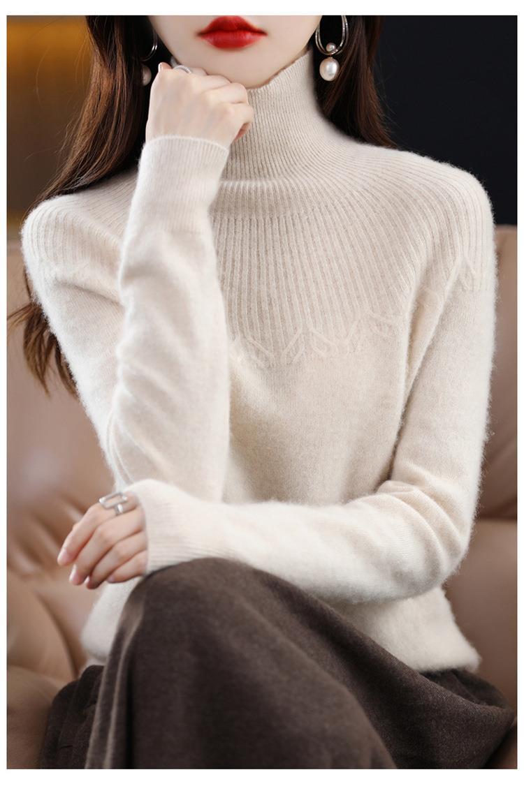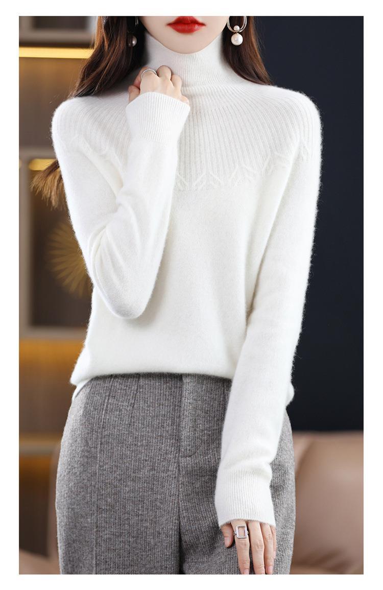 Suéter de Lana Nueva para Mujer Otoño/Invierno 25, Tejido Listo para Usar de Cuello Alto Suelto, Camiseta Base Adelgazante