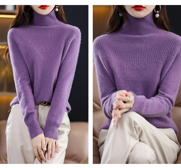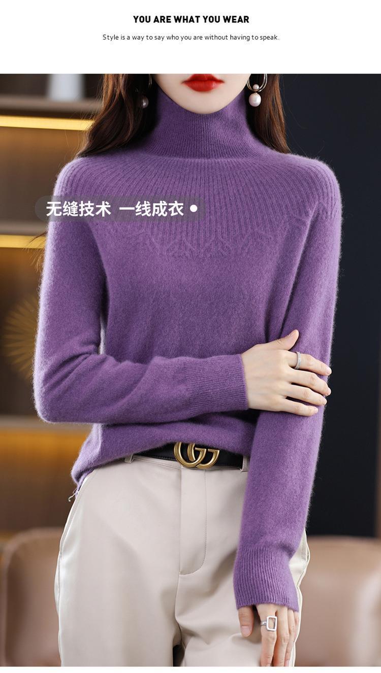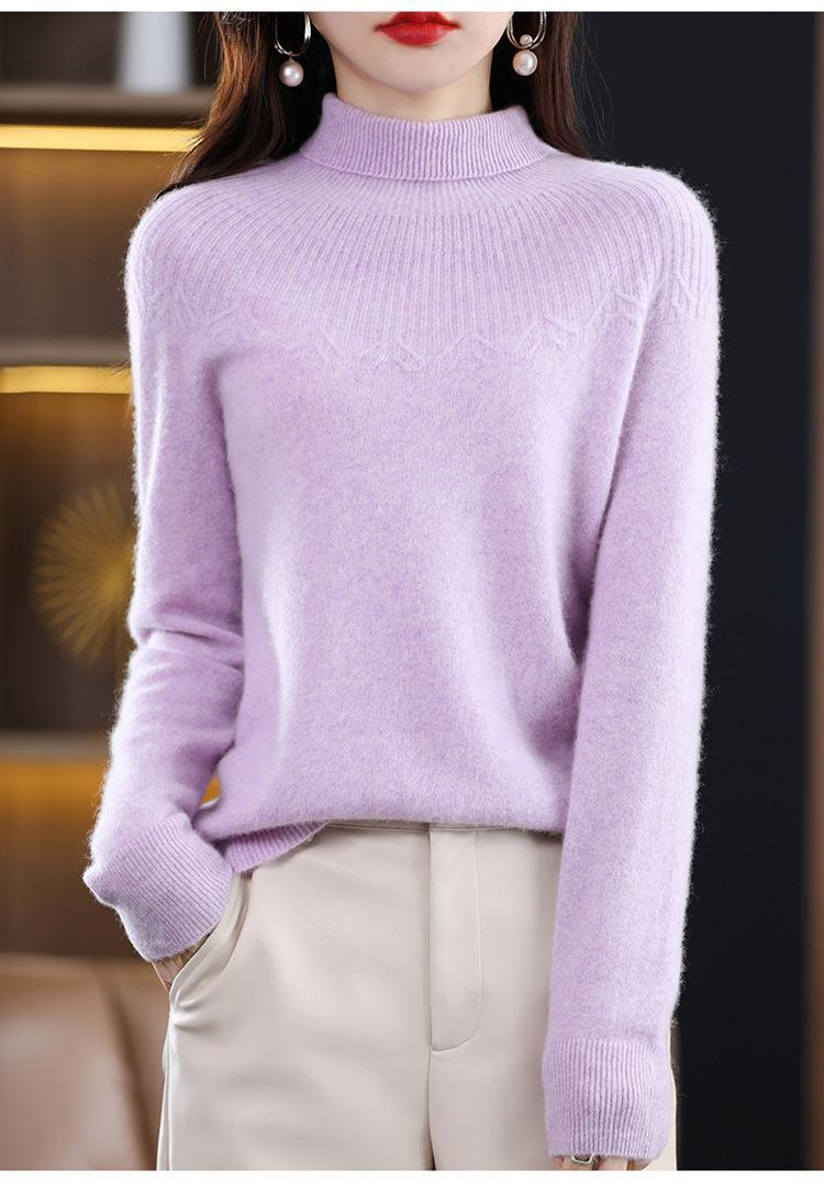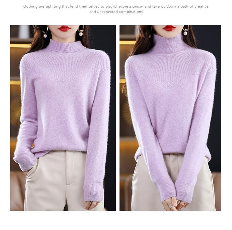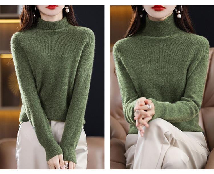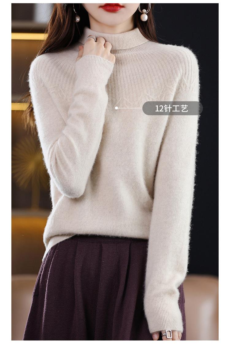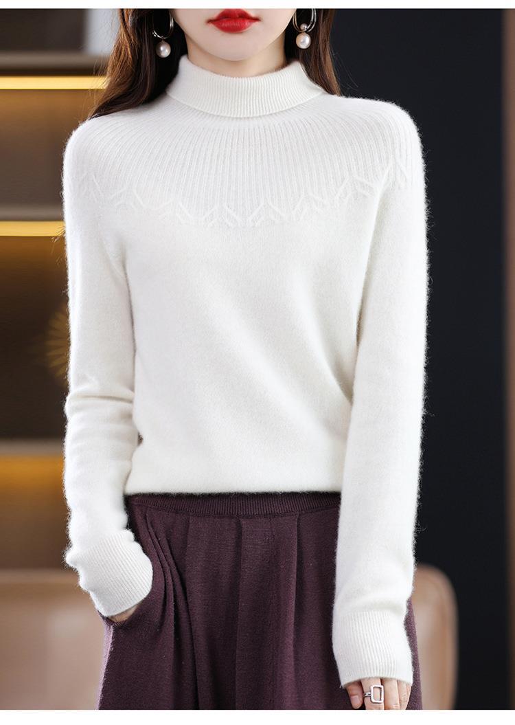Suéter de Lana Nueva para Mujer Otoño/Invierno 25, Tejido Listo para Usar de Cuello Alto Suelto, Camiseta Base Adelgazante