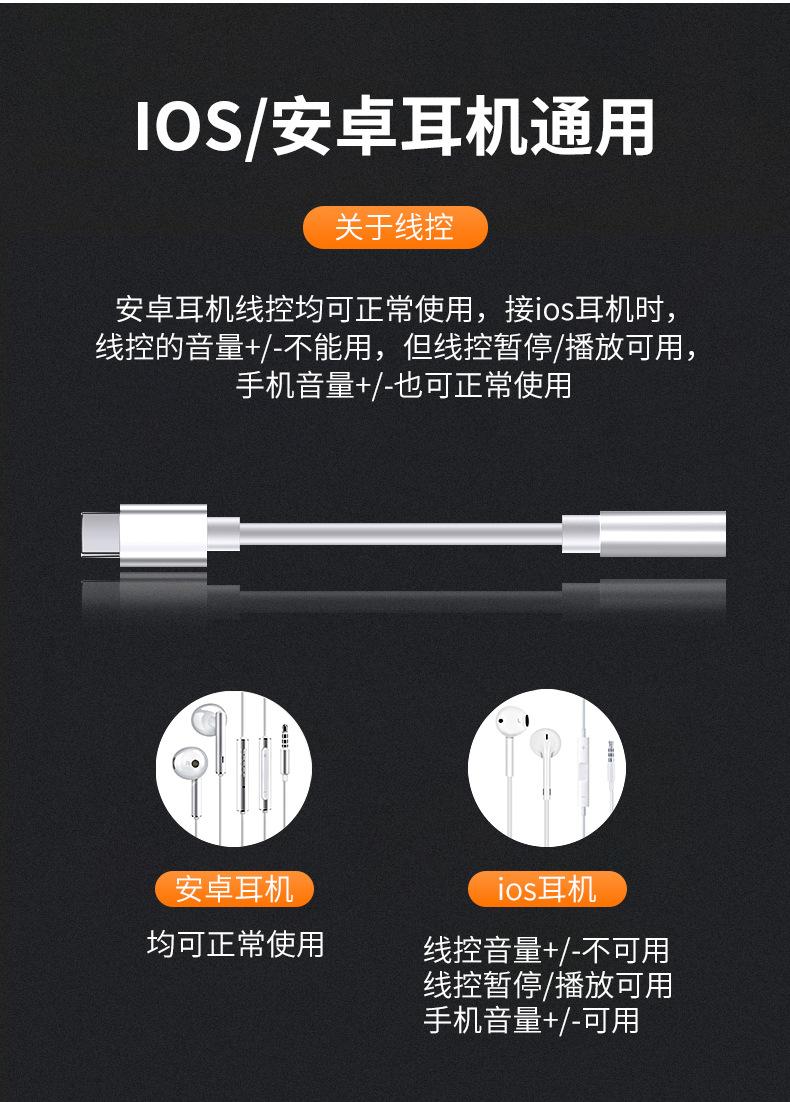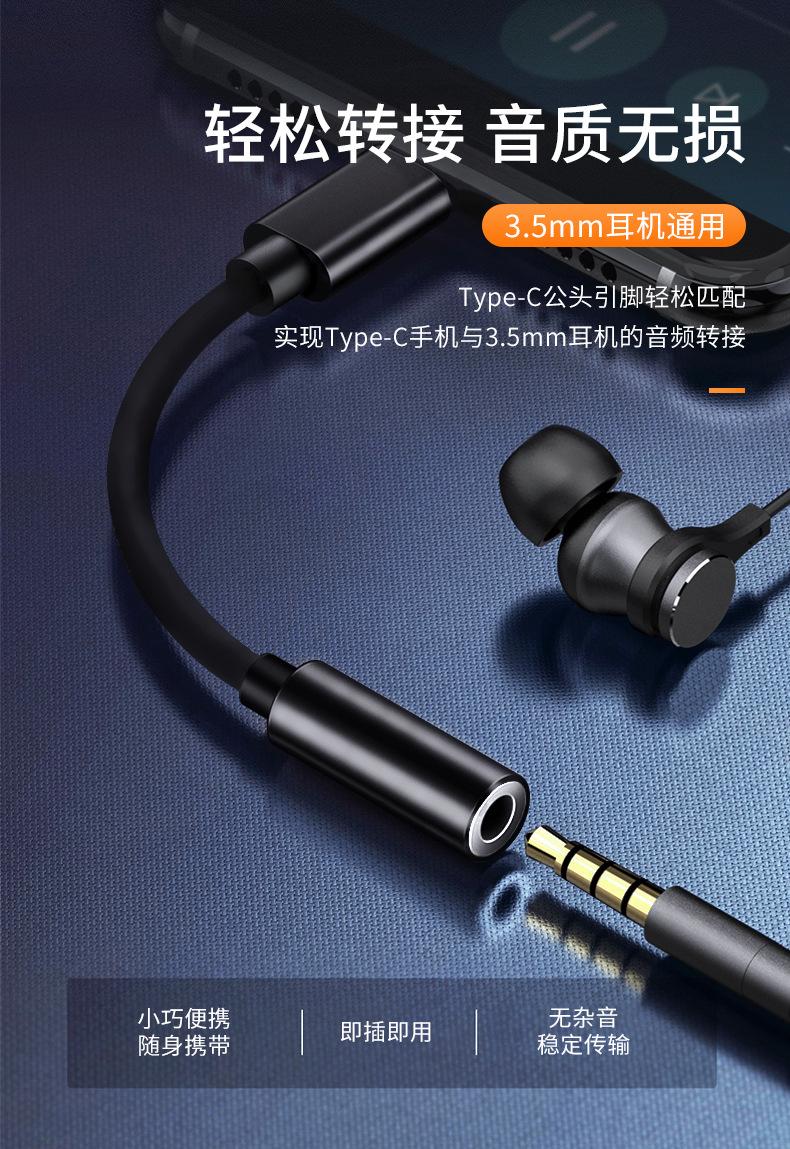 Cable adaptador de tipo C a 3,5 mm para Huawei y Xiaomi, cable de audio analógico, adaptador de auriculares.