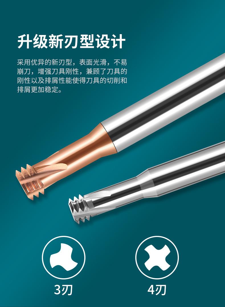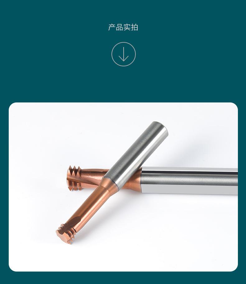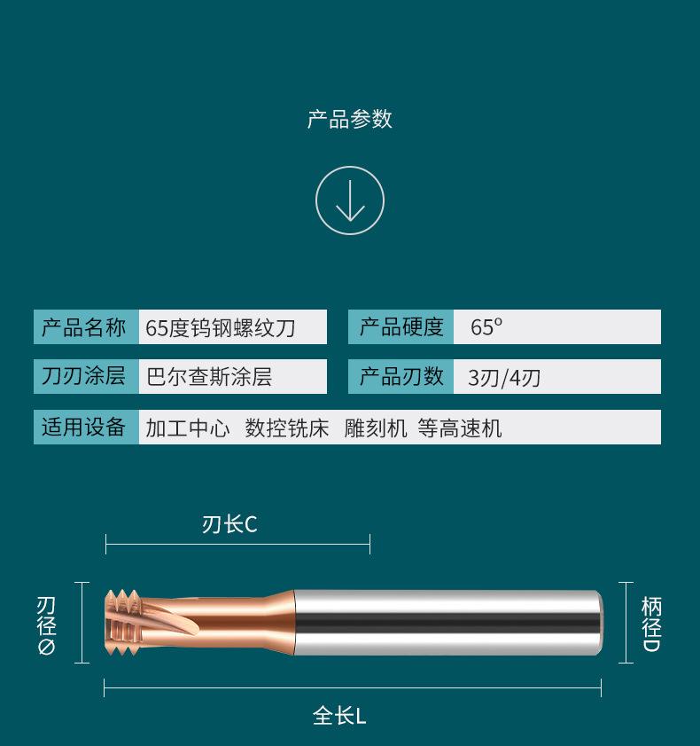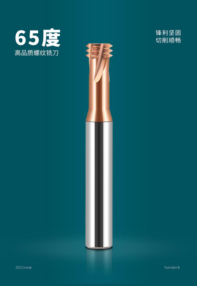 Fresa de rosca de tres dientes de 65 grados, fresa de carburo de tungsteno de acero, fresa de extremo CNC de un solo diente, m2m3m4m6