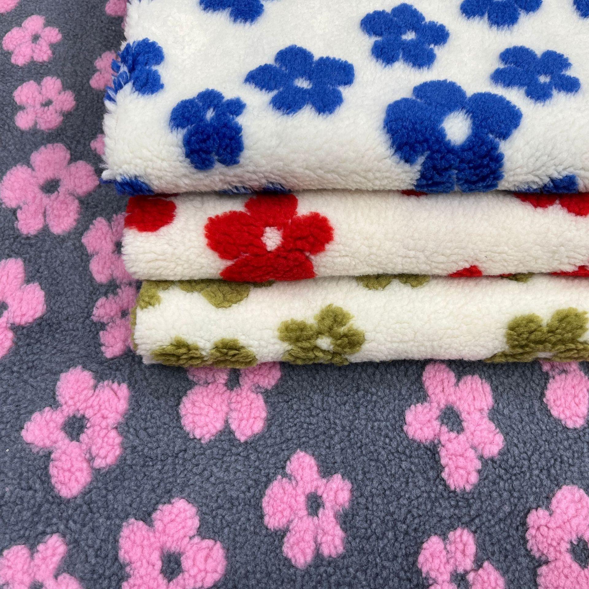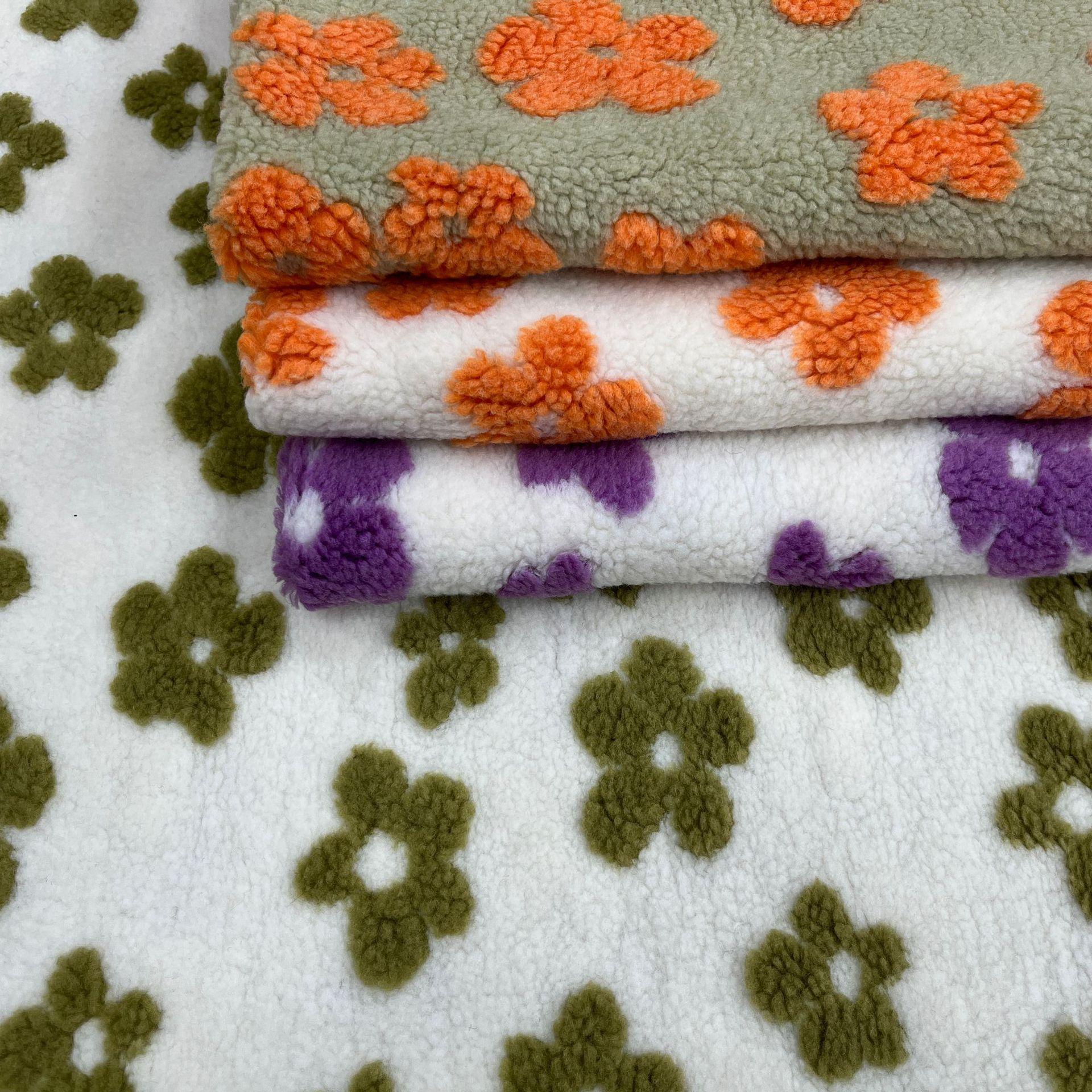 Tejido de terciopelo jacquard con estampado de flores de vellón de cordero de alta calidad, tejido de cachemira esponjoso para abrigo, venta al por mayor