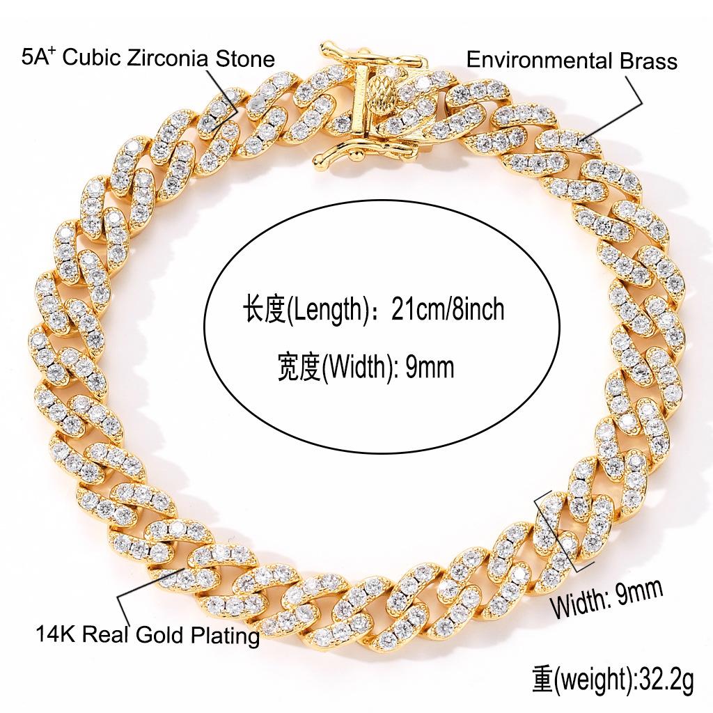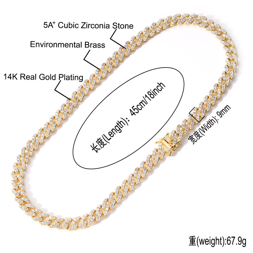 Artículo/Nombre del producto: hip hopCadena cubana de circonita de una fila de 9 mm