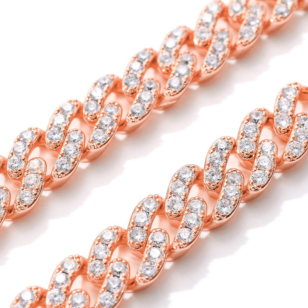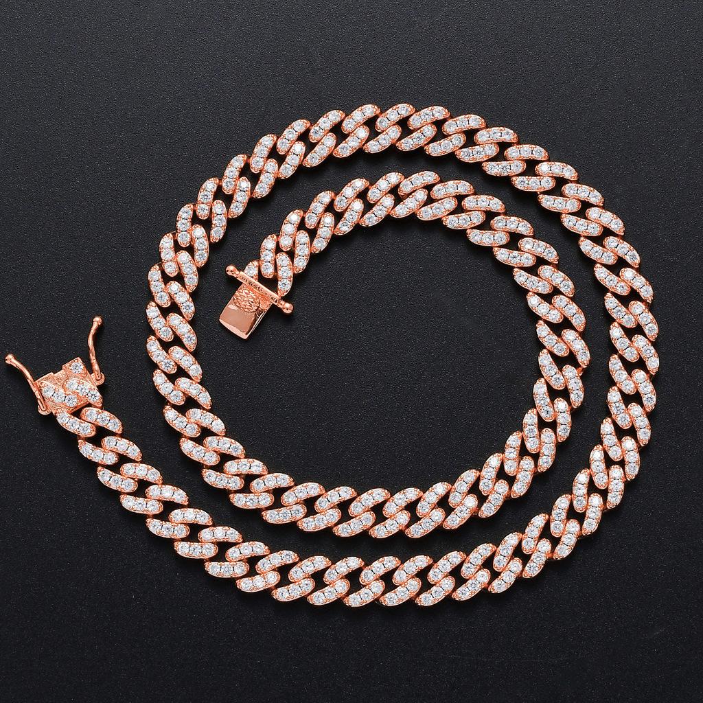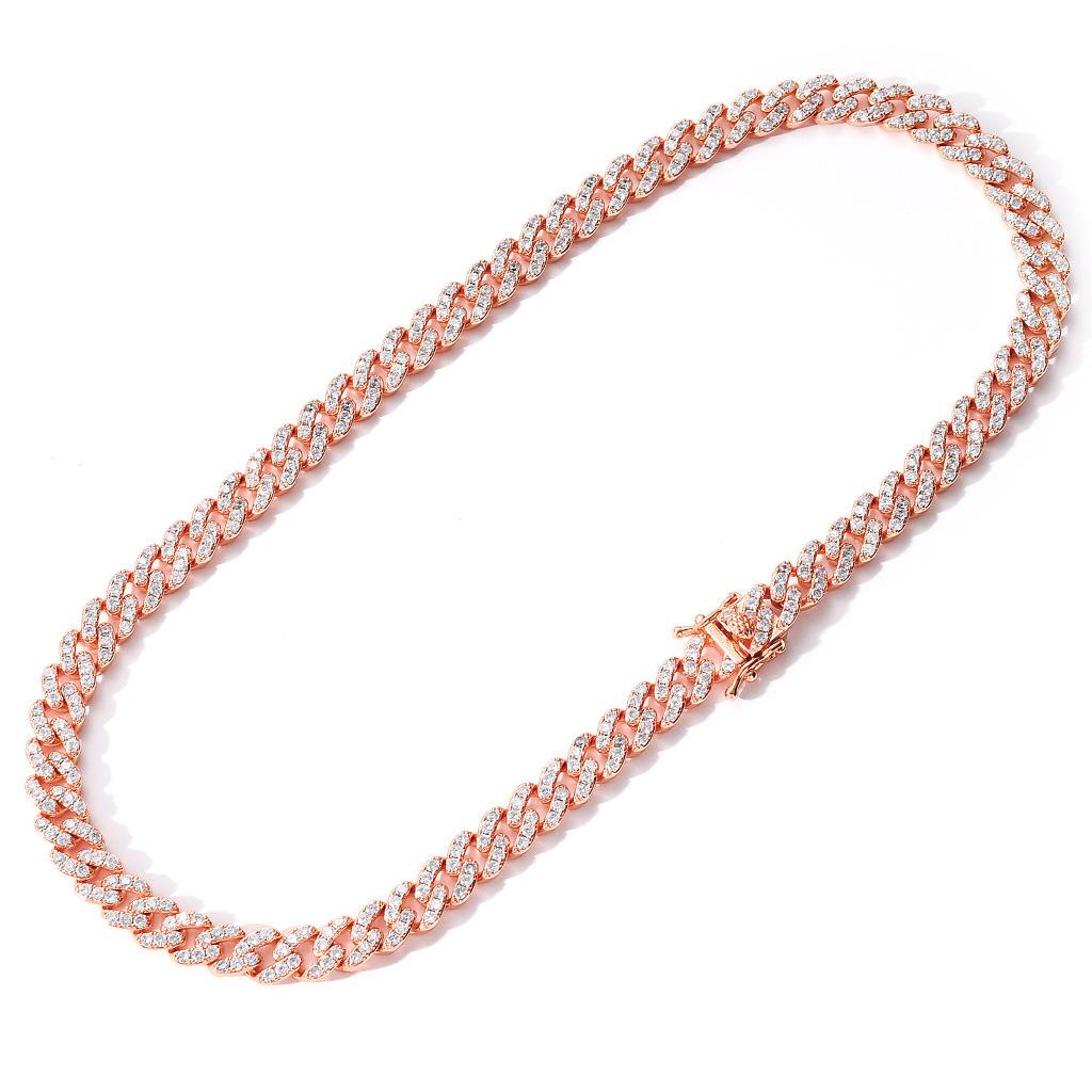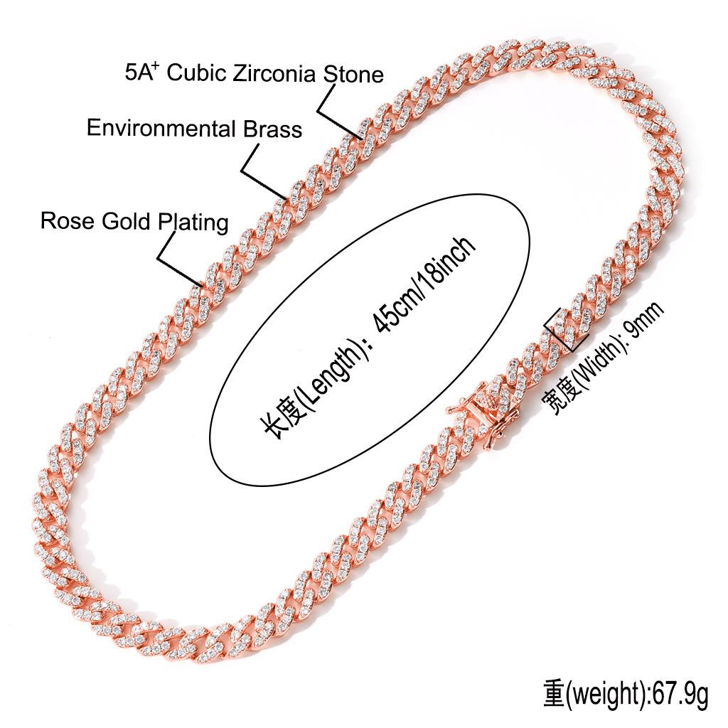 Collar Hip-Hop Transfronterizo Europeo y Americano 9mm Fila Sencilla Zircón Blanco Oro Rosa Cadena Cubana Hombres y Mujeres Collar Simple Personalizado