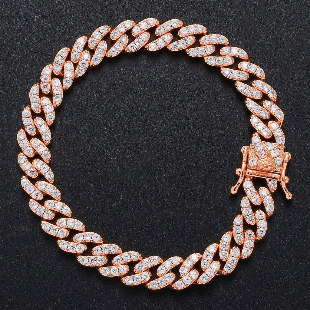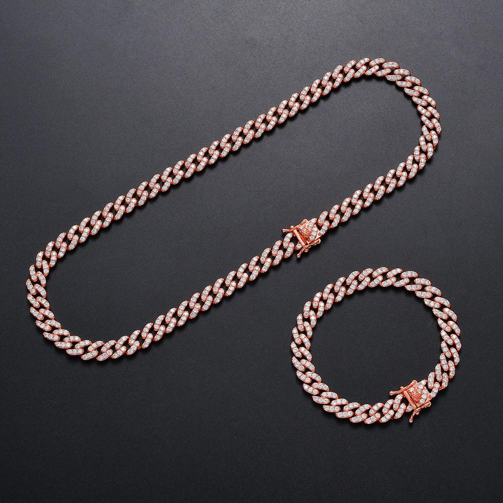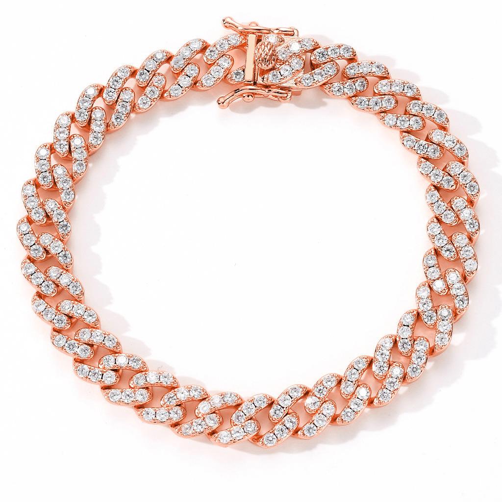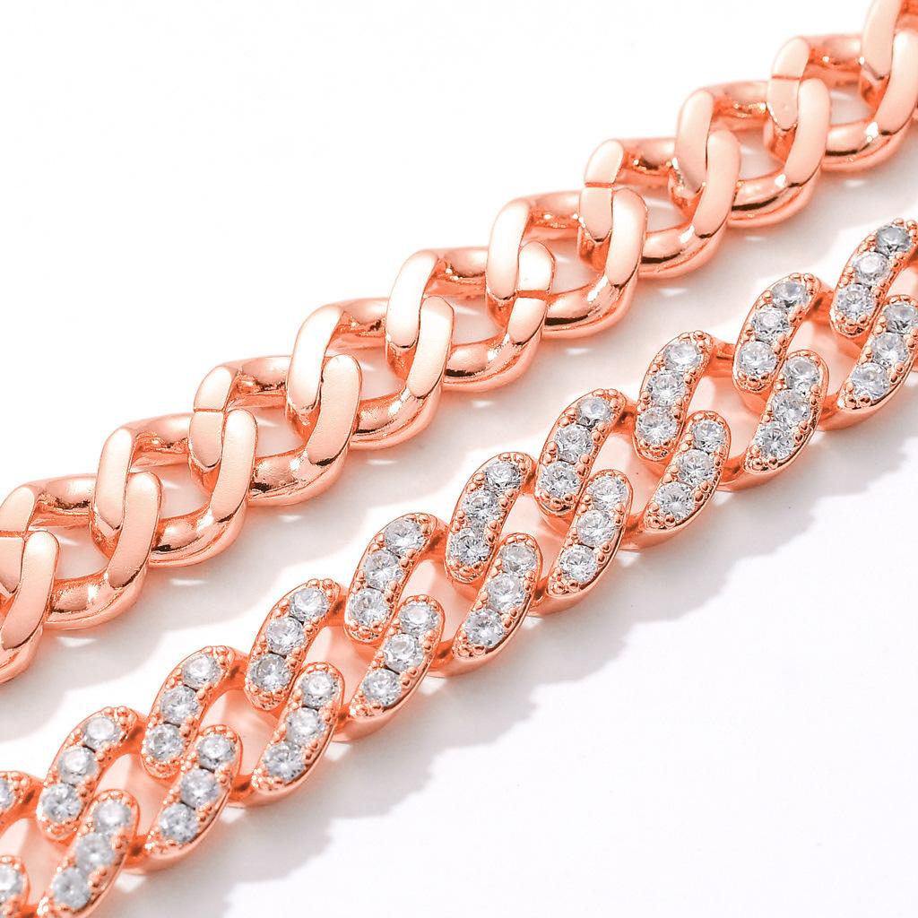 Collar Hip-Hop Transfronterizo Europeo y Americano 9mm Fila Sencilla Zircón Blanco Oro Rosa Cadena Cubana Hombres y Mujeres Collar Simple Personalizado