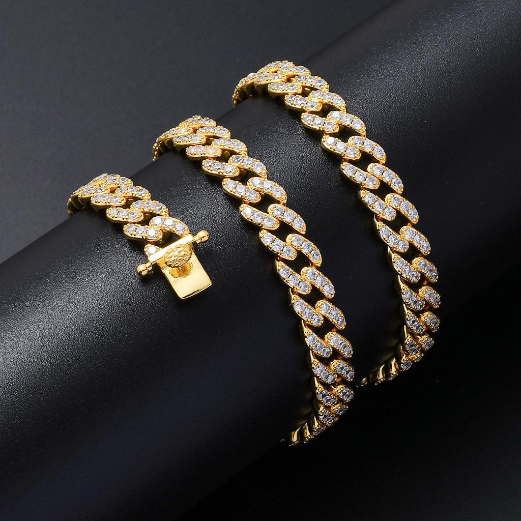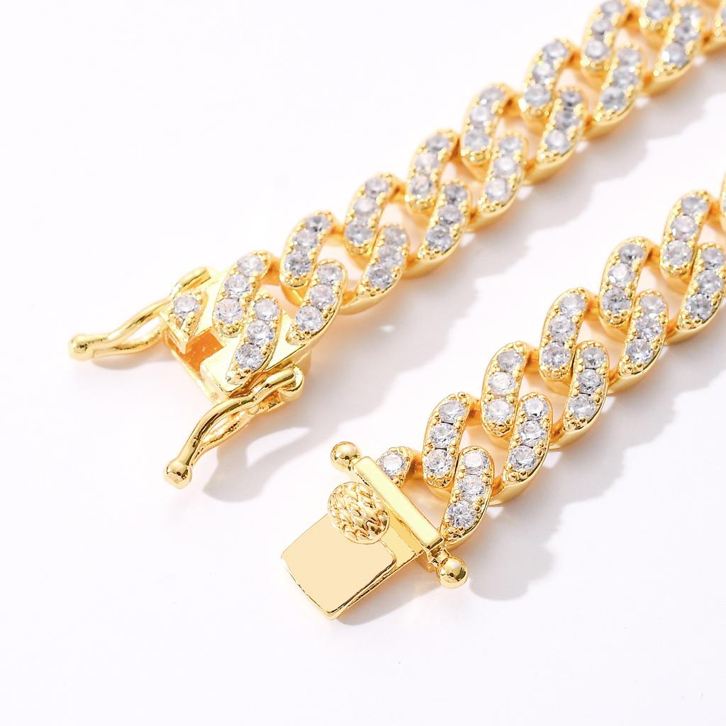 Collar de hip-hop con barra cubana de estilo hip-hop para hombres europeos y americanos, con incrustaciones de cobre y circonita de 14 mm en forma de diamante, cadena cubana de estilo hip-hop.
