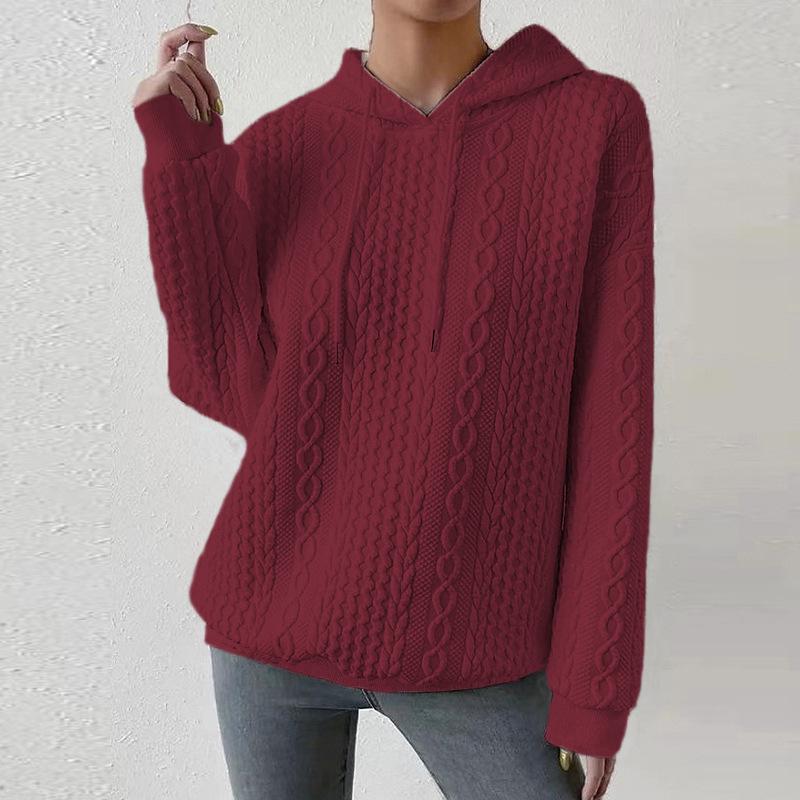 Otoño 2023 transfronterizo Amazon nuevo suéter holgado de manga larga con capucha y jacquard para mujer de talla grande europeo y americano