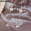 Cadena de clavícula con forma de corazón para niña, estilo coreano, de plata de ley s925, elegante colgante con alas de cisne y circonita, entrega al por mayor de fábrica