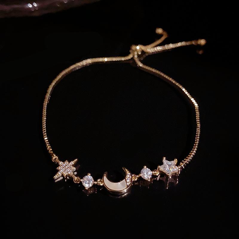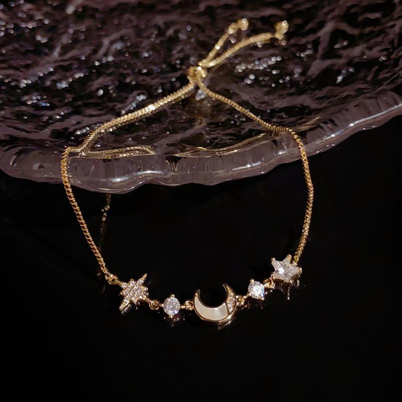 Zircon Star Moon Pull Bracelet (Thickened Gold Plating)
