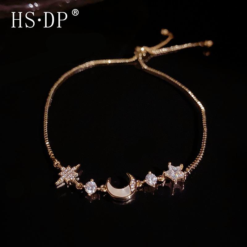 Pulsera de Moda con Sentido Avanzado de Estrella Luna de Circonita Extraíble Lujo Ligero Retro Moda Diseño de Nicho Personalizado Pulsera Elegante