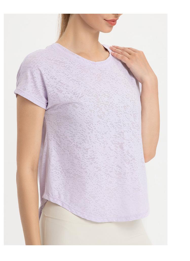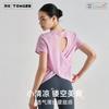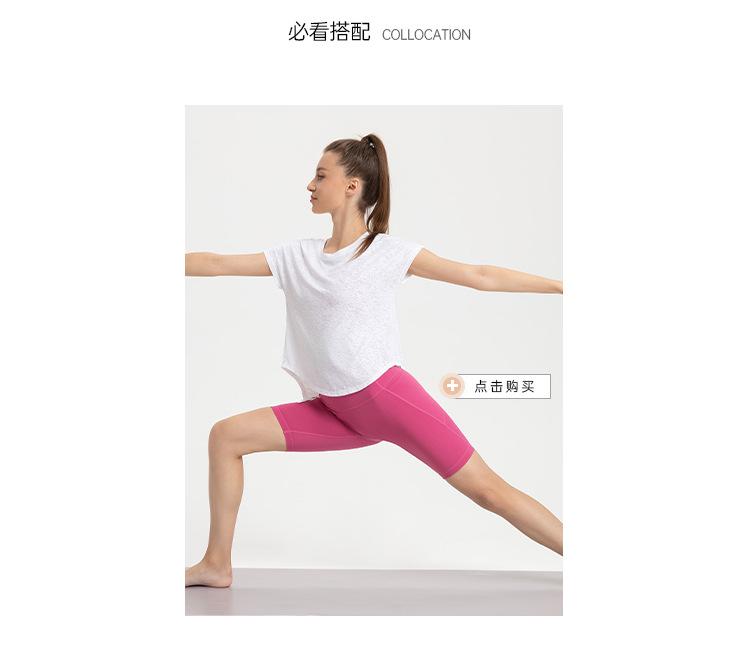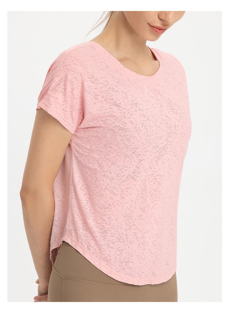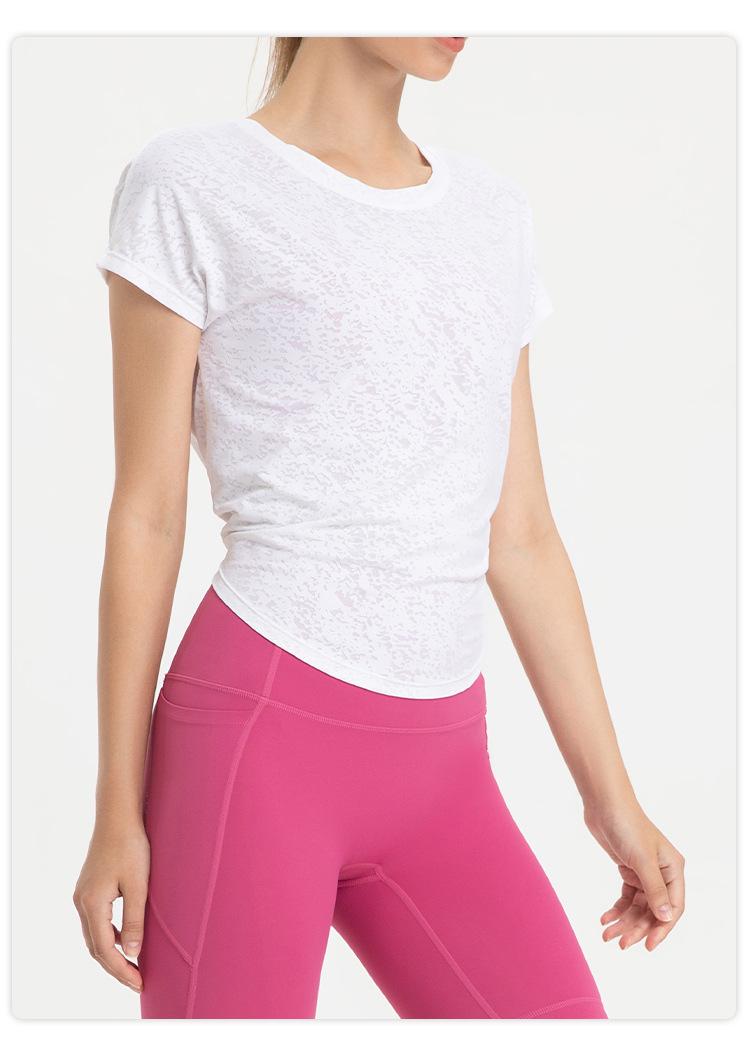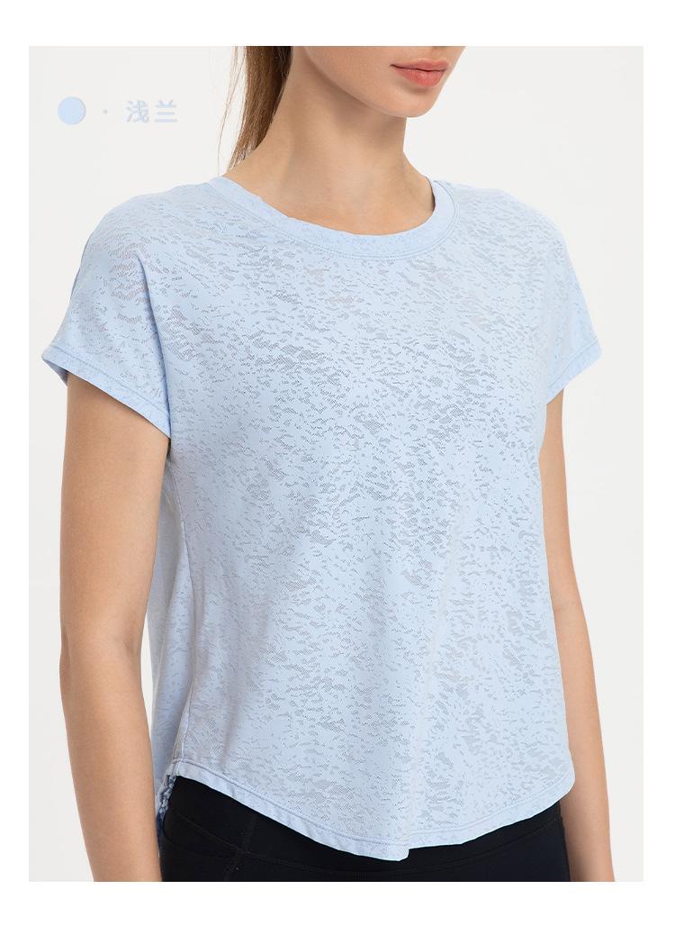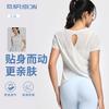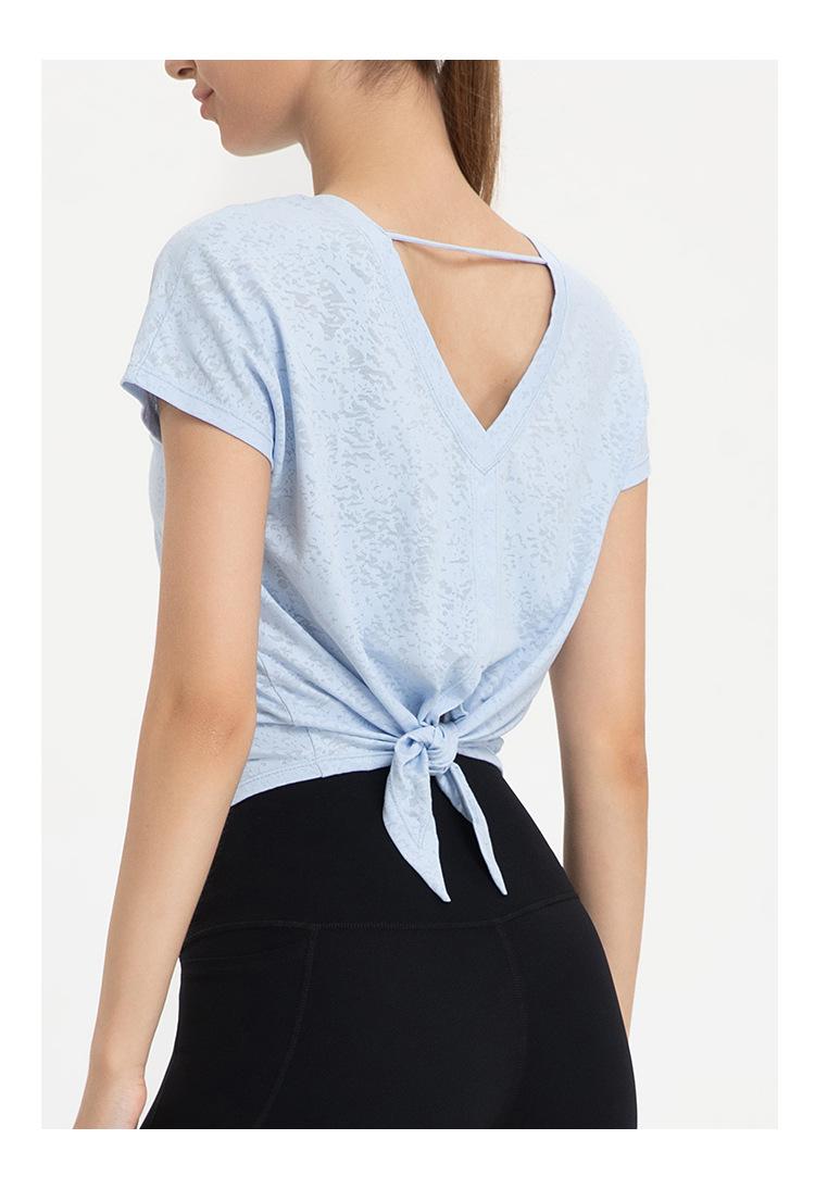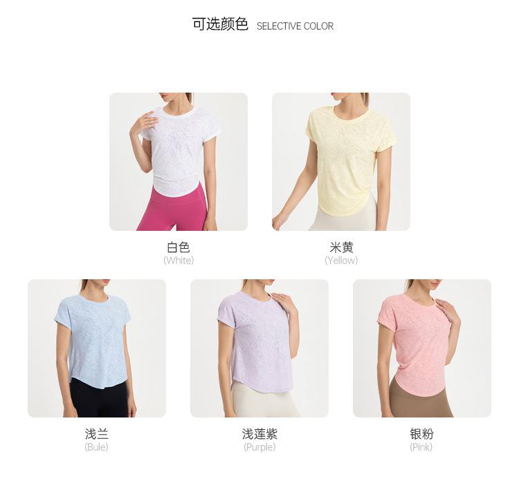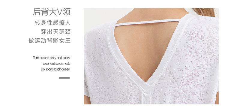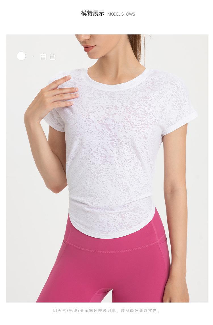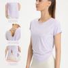 Blusa deportiva de manga corta para yoga, holgada, de secado rápido, ligera, transpirable, con espalda descubierta y abertura en jacquard.