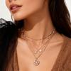 Joyería Transfronteriza Europea y Americana Collar Retro para Mujer Multicapa Perla Imitación Incrustada con Pedrería Cadena Clavícula Colgante Estrella Hexagonal