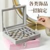 Exquisita caja de almacenamiento de joyas gris, caja de franela para joyería, caja de embalaje para relojes, pendientes y anillos.