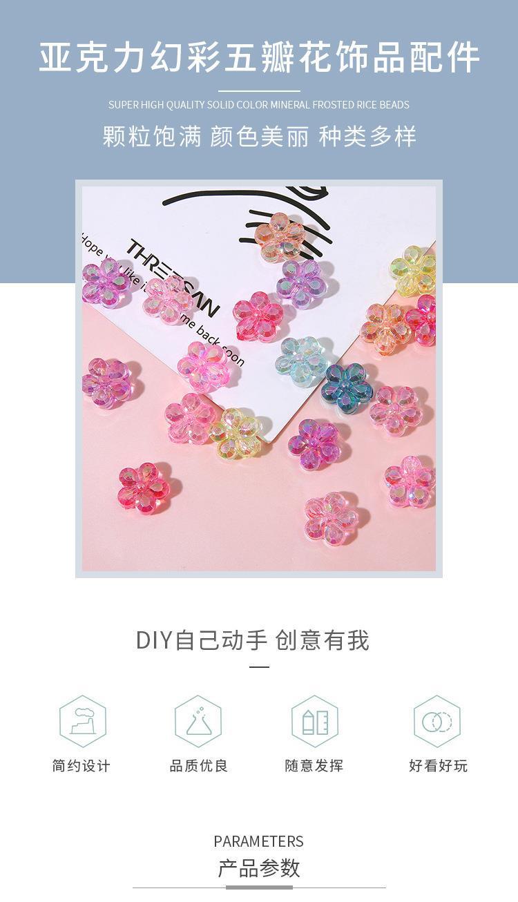 Abalorios acrílicos de color mágico de cinco pétalos hechos a mano DIY accesorios de joyería material para pulsera con cuentas fabricantes mayoristas de cuerdas para el cabello