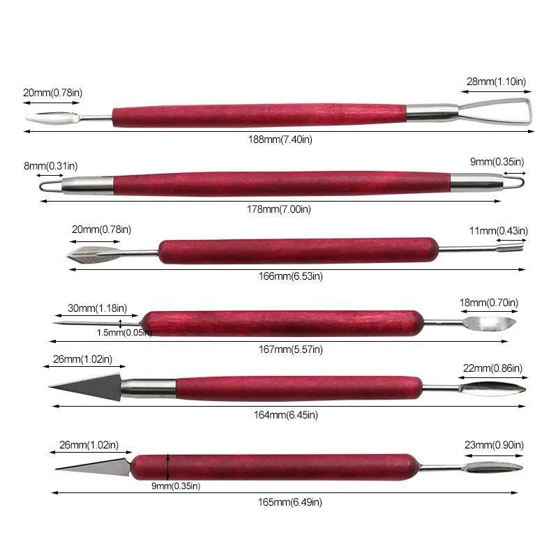 Herramientas de cerámica de bricolaje transfronterizas Herramienta de tallado de arcilla de madera de seis piezas de palisandro Escultura de cuchillo Reparación de embriones