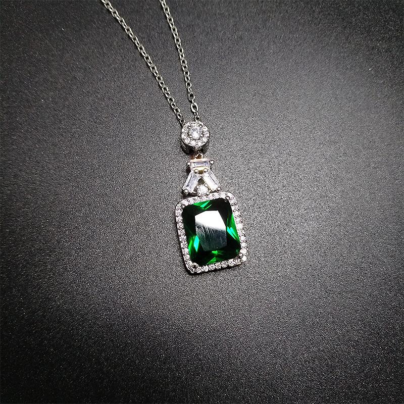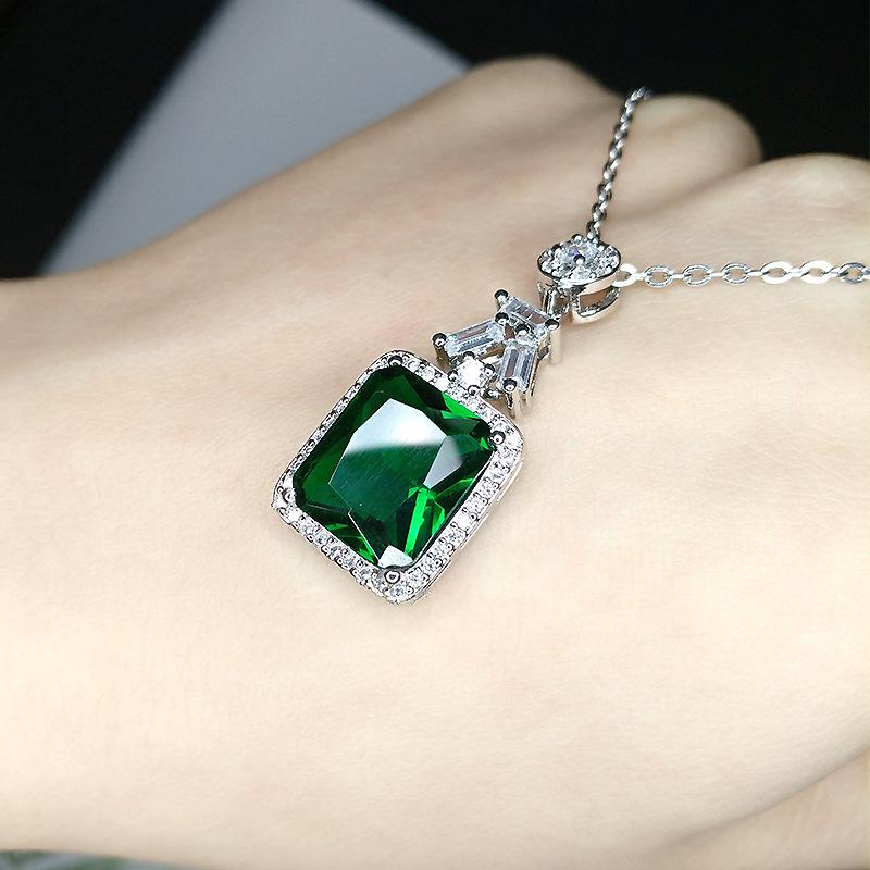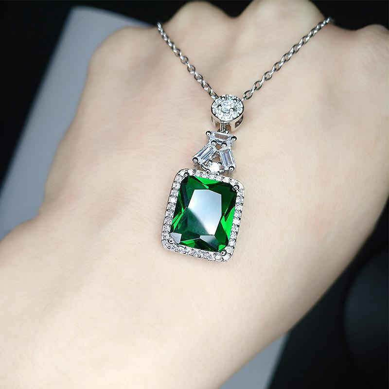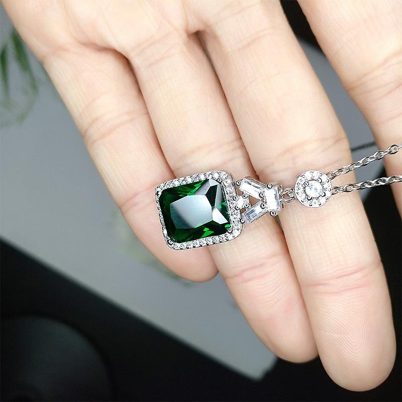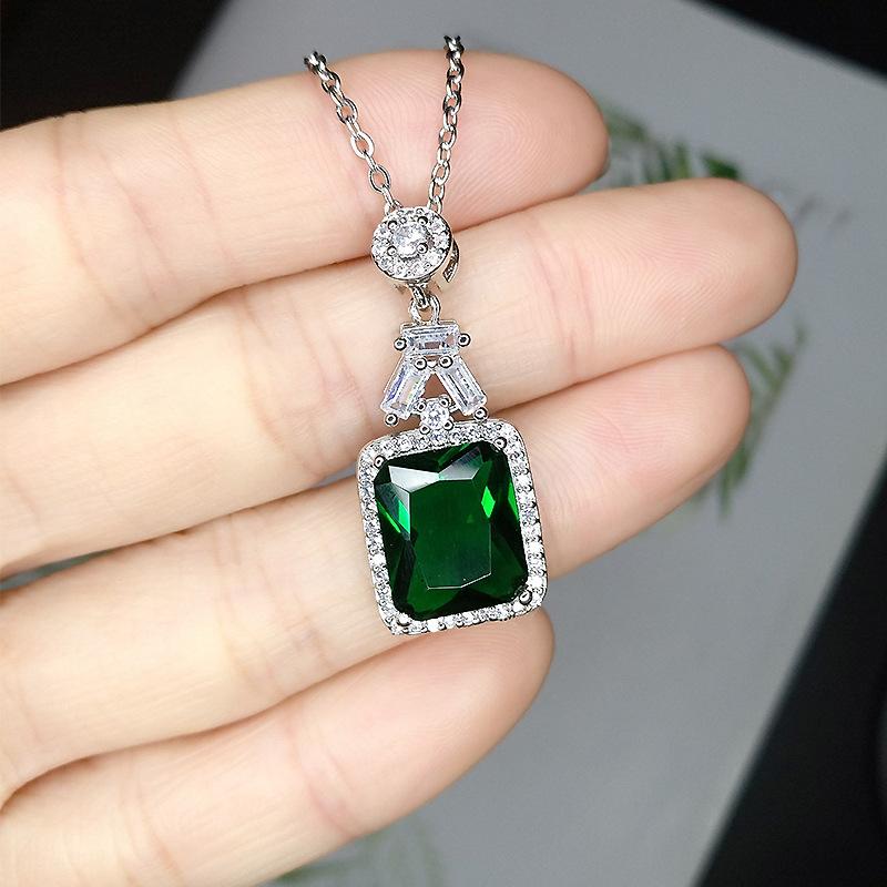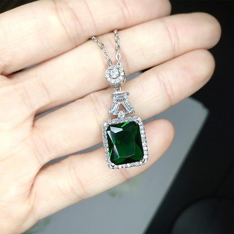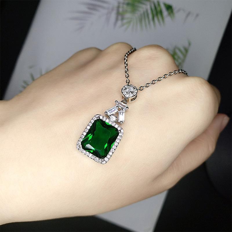 Colgante transfronterizo de turmalina de imitación esmeralda con piedras preciosas, de lujo europeo, con diamantes blancos y conjunto de flores cuadradas multilaterales.