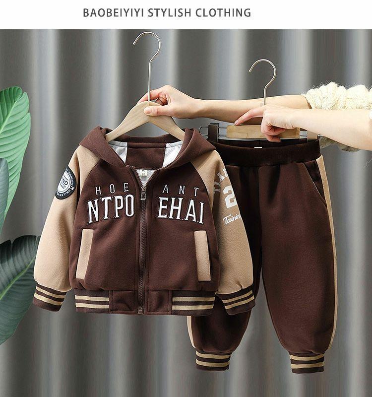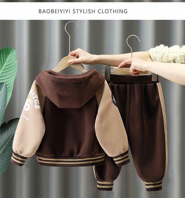 Traje de Terciopelo de Otoño para Niño 2025 Nuevo Ropa Infantil de Celebridad de Internet Conjunto Casual de Dos Piezas con Capucha para Bebé para Niño a la Moda