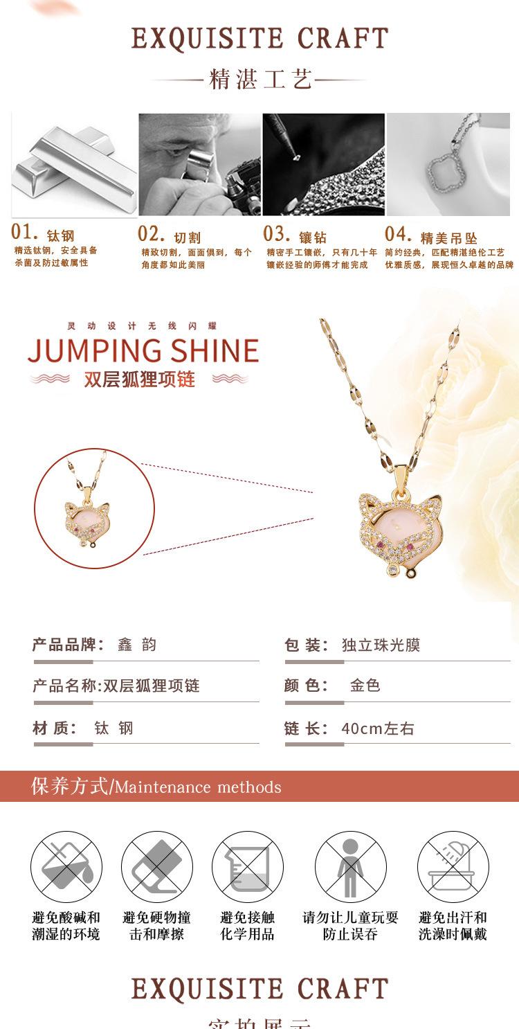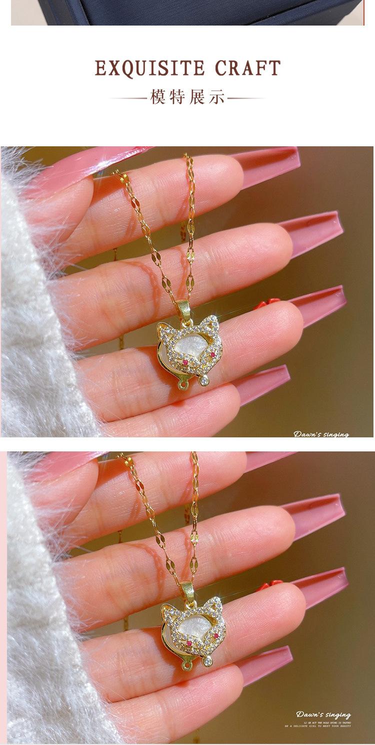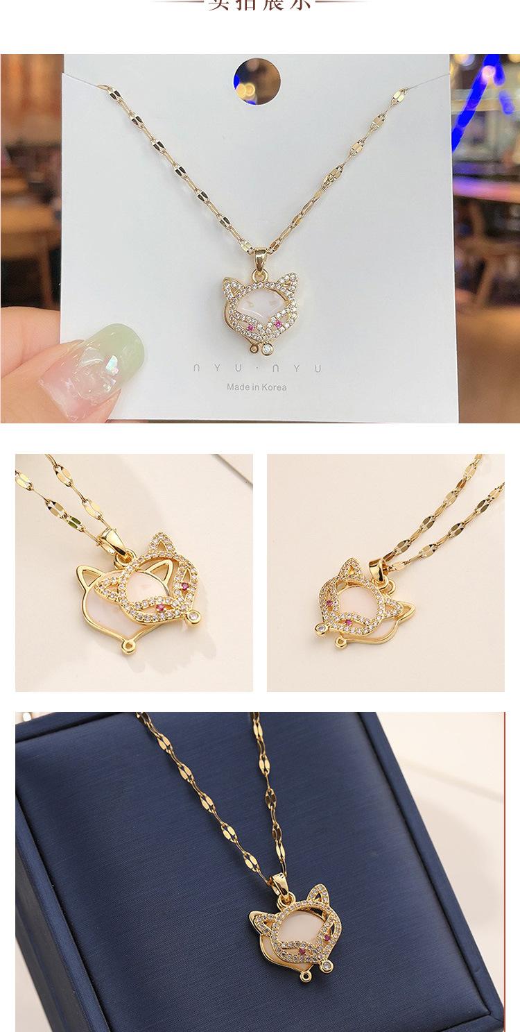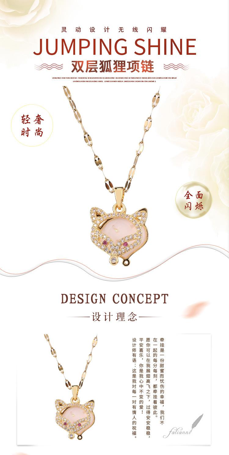 Collar con colgante de cabeza de zorro doble de acero de titanio con diseño de viento rojo neto para mujer, cadena de clavícula de jade de imitación de diamante con personalidad, joyería al por mayor