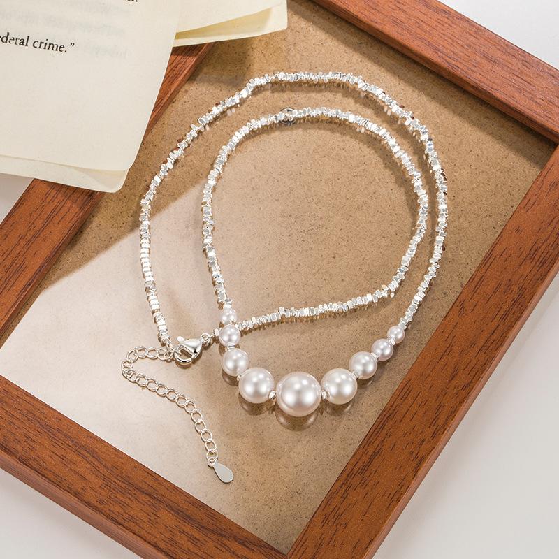 Collar de perlas de alta gama, sencillo y ligero, de plata rota, para mujer, nuevo collar explosivo de 2023, cadena de clavícula de circonita