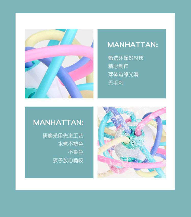 Pelota Manhattan para Bebé Mordedor Molar Pelota de Mano Sonajero para Masticar Campana de Cuna 0-3 Años Juguete para Bebé