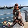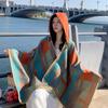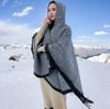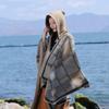 Bufanda chal tipo cachemira gruesa y cálida de estilo coreano, versátil, a cuadros, con capucha, chal, capa de viaje para mujer