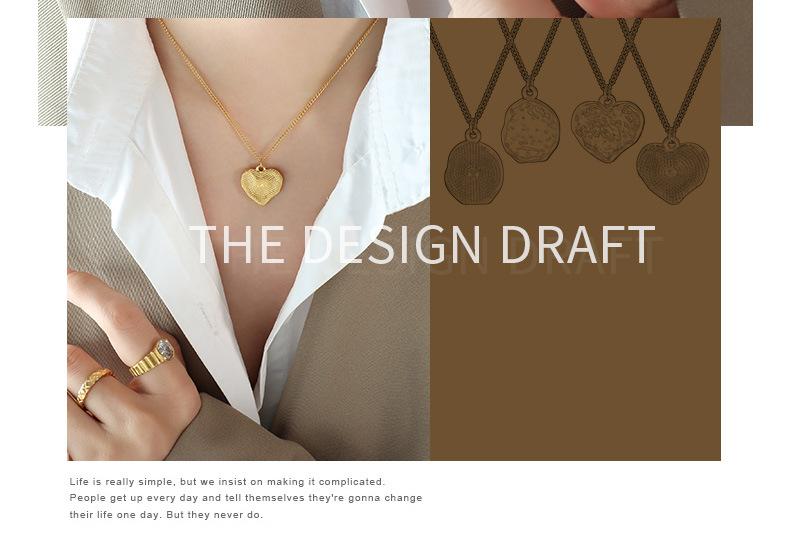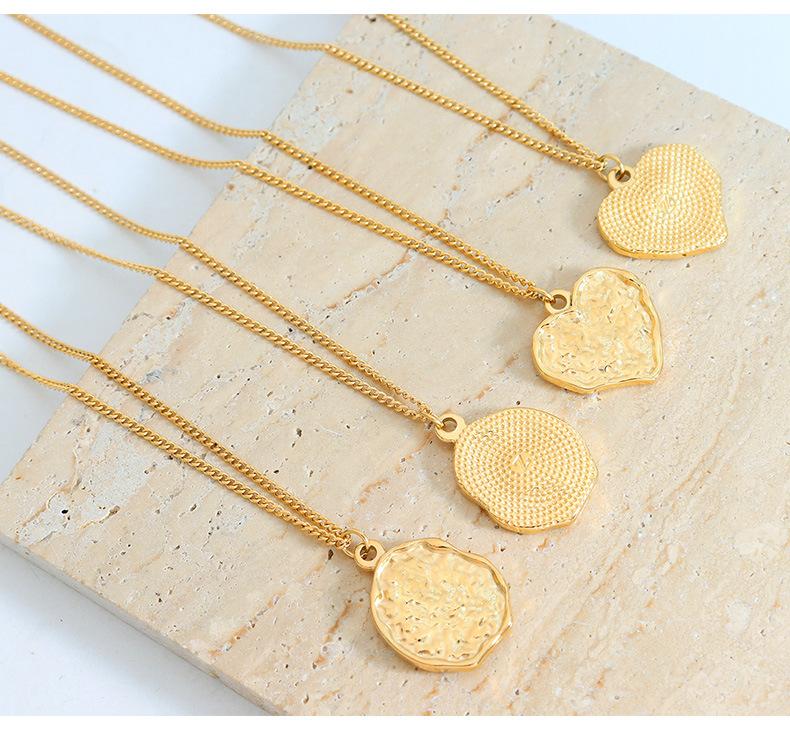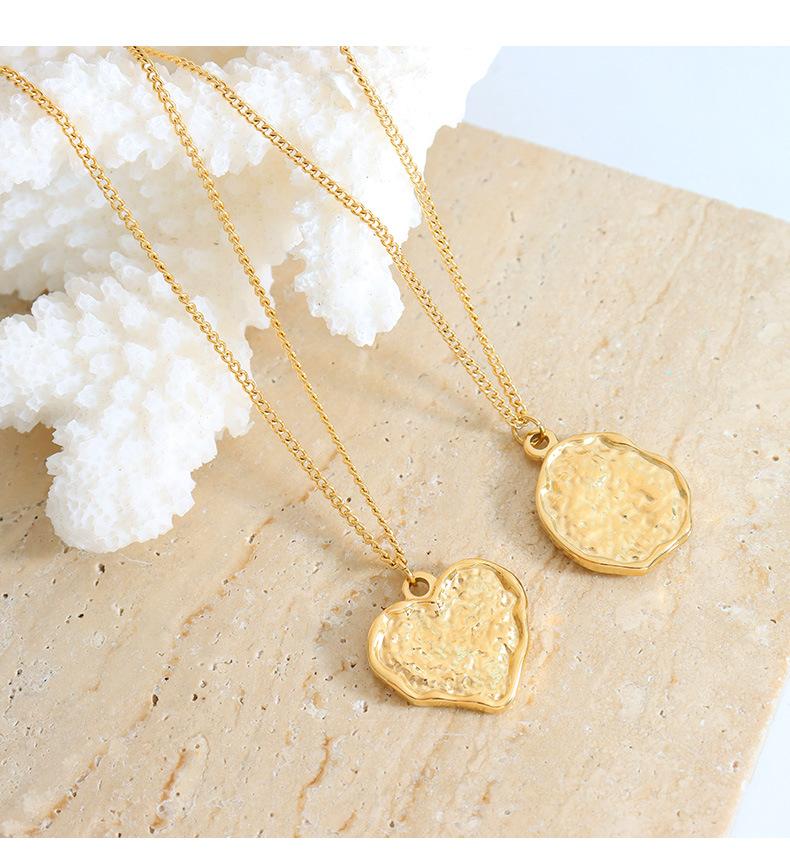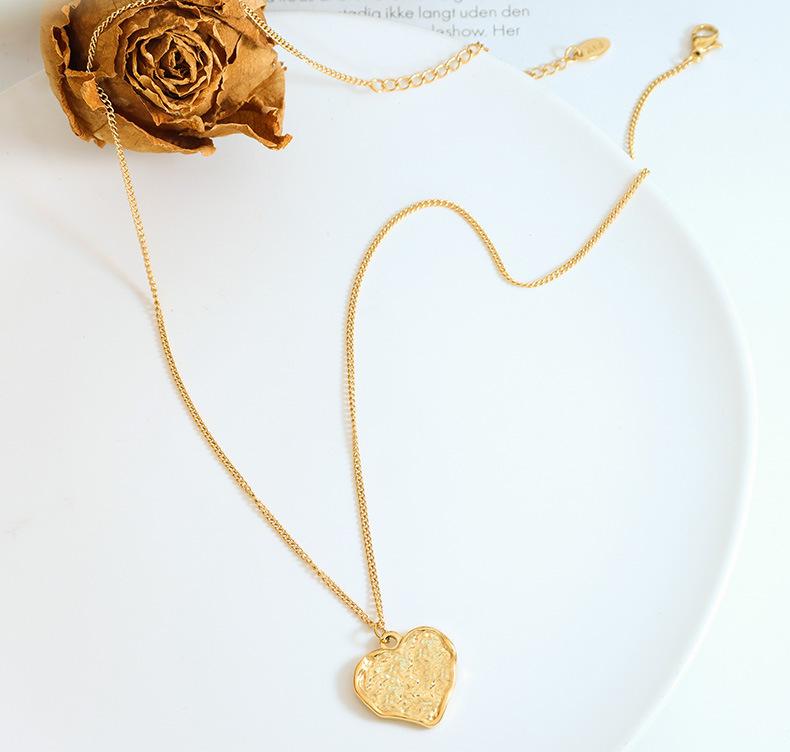 Collar con Colgante Irregular de Corazón Doble Cara con Personalidad de Patrón Martillado Francés para Niñas Niñas Mejor Amiga Clavícula Acero Titanio