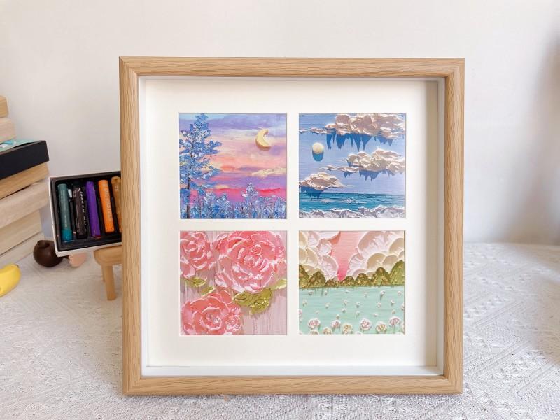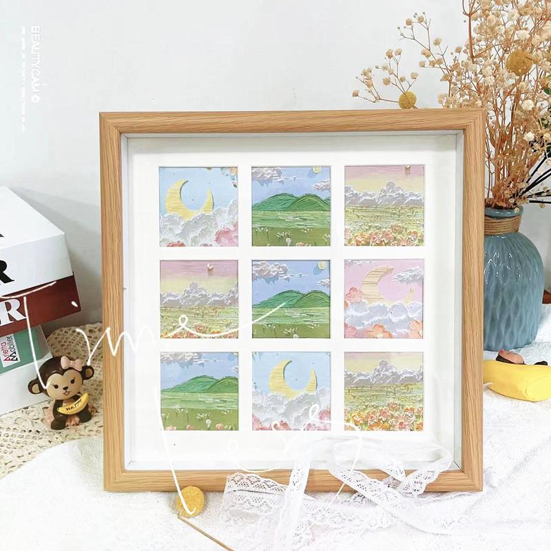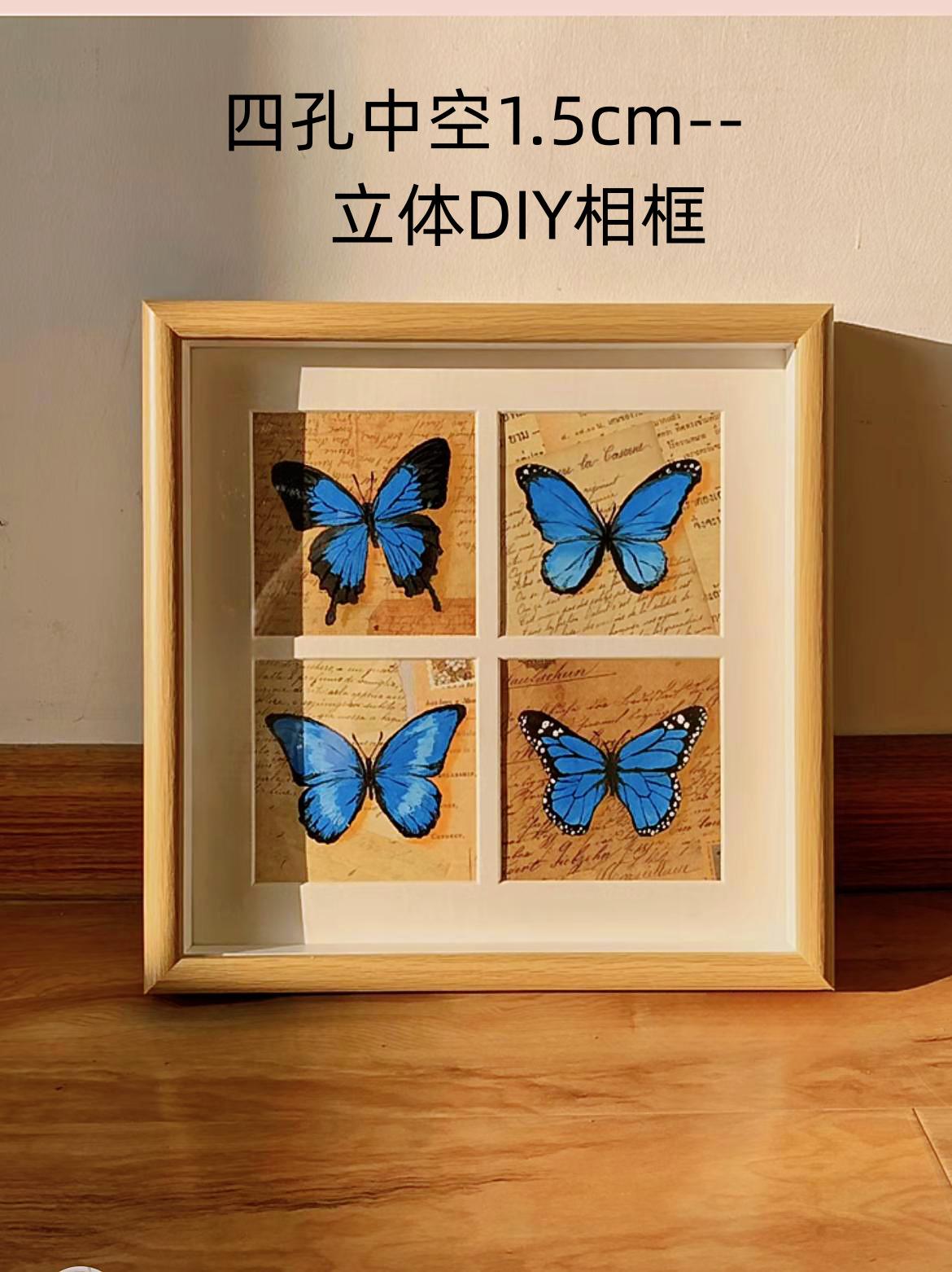 Marco de fotos creativo de madera hueca tridimensional con textura de palo para pintura al óleo, marco de cuatro palacios, marco de fotos montado a mano, regalo de mesa creativo