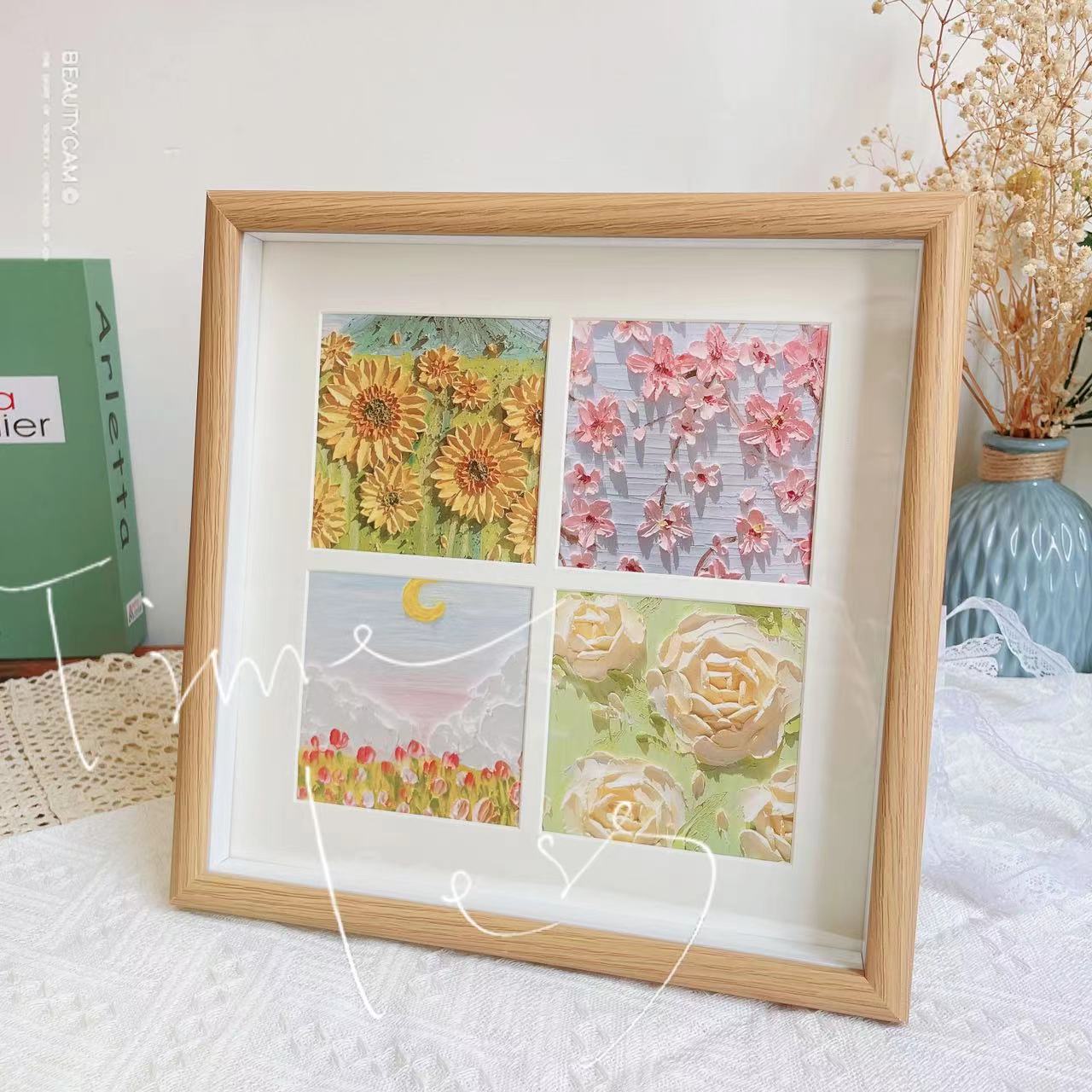 4 gongge frame (4 10cm works Hollow 1.5cm wood color