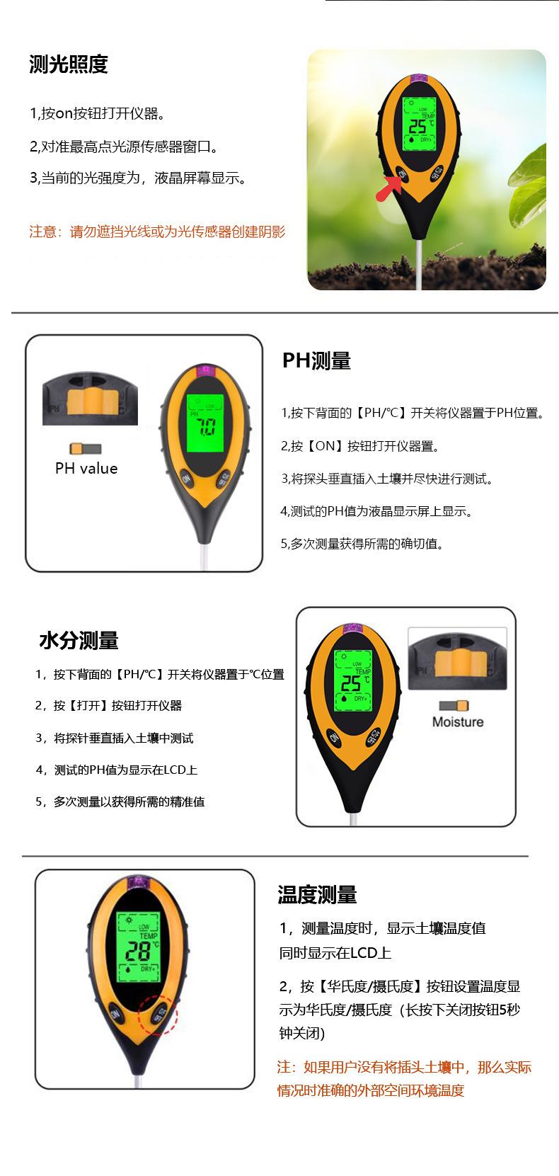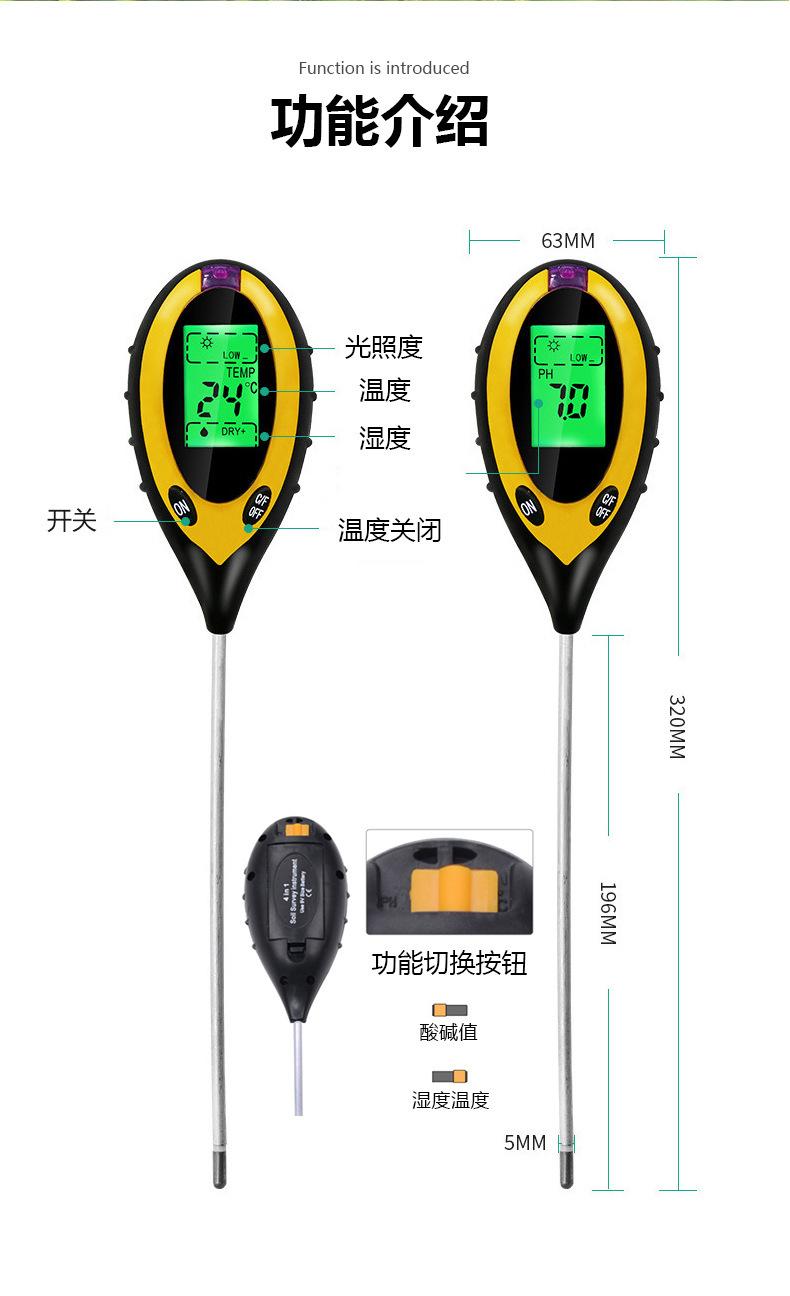Detector de pH y humedad del suelo, comprobador de pH y humedad de nutrientes, medidor de fertilizantes de flores y jardinería doméstica de alta precisión