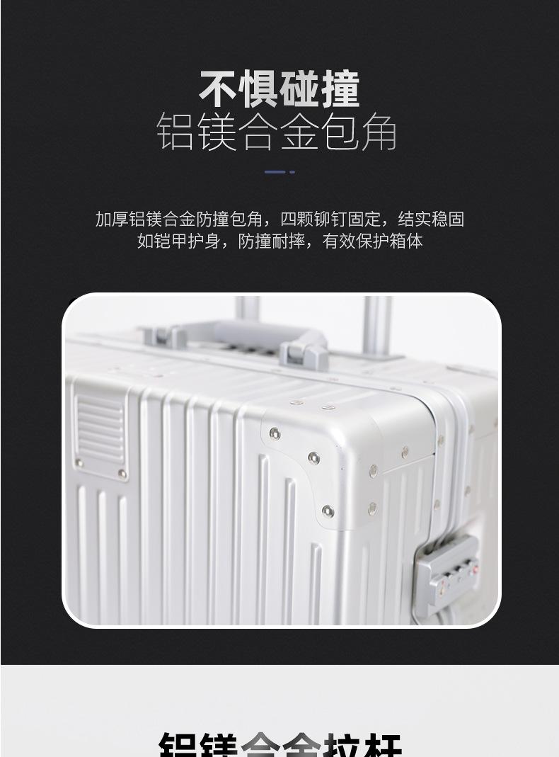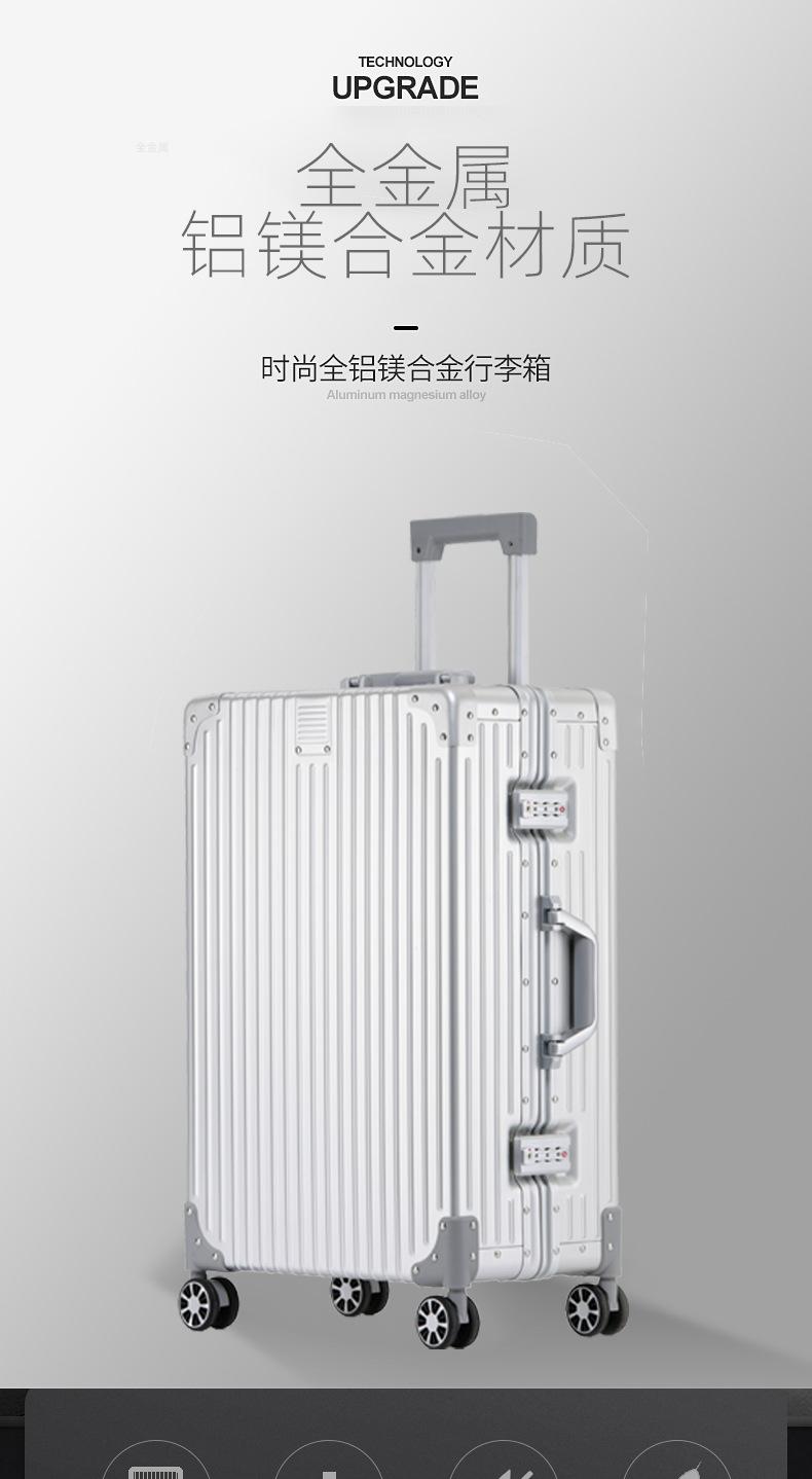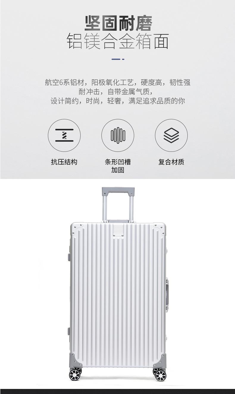 Maleta Trolley de Aleación de Aluminio-Magnesio, Rueda Universal, Maleta de Marco de Aluminio, Caja con Contraseña para Hombre y Mujer, Maleta de Mano, Maleta Retro de Ángulo Recto