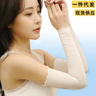 Mangas de protección solar para exteriores, sexys, de encaje, con efecto hielo, para mujer, para conducir en verano, monocromáticas, venta al por mayor, envío directo.