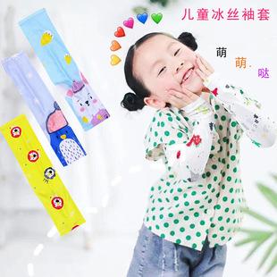 Mangas de protección solar para niños, mangas de seda fría con estampado fresco, mangas para los dedos con animación de dibujos animados, mangas de hielo para bebés, mangas de verano al por mayor