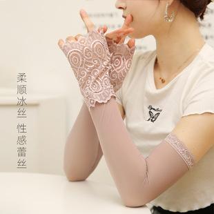 Mangas de protección solar de seda de hielo de verano, finas y arrugadas, para deportes al aire libre, mangas de medio dedo con encaje transpirable, mangas para mujer, venta al por mayor