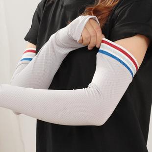 Mangas de hielo de verano, mangas de ciclismo de seda de hielo, rayas deportivas, mangas de guantes de protección solar de moda, mangas de brazo para conducción al aire libre para mujeres