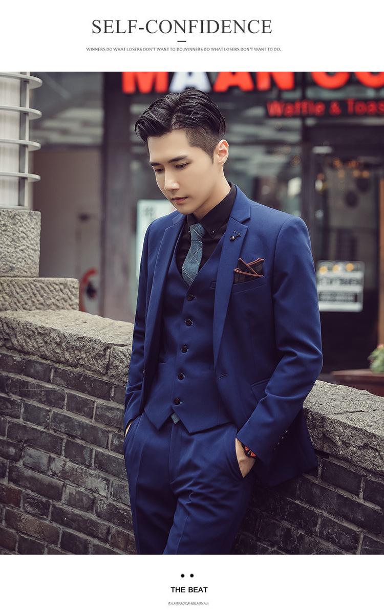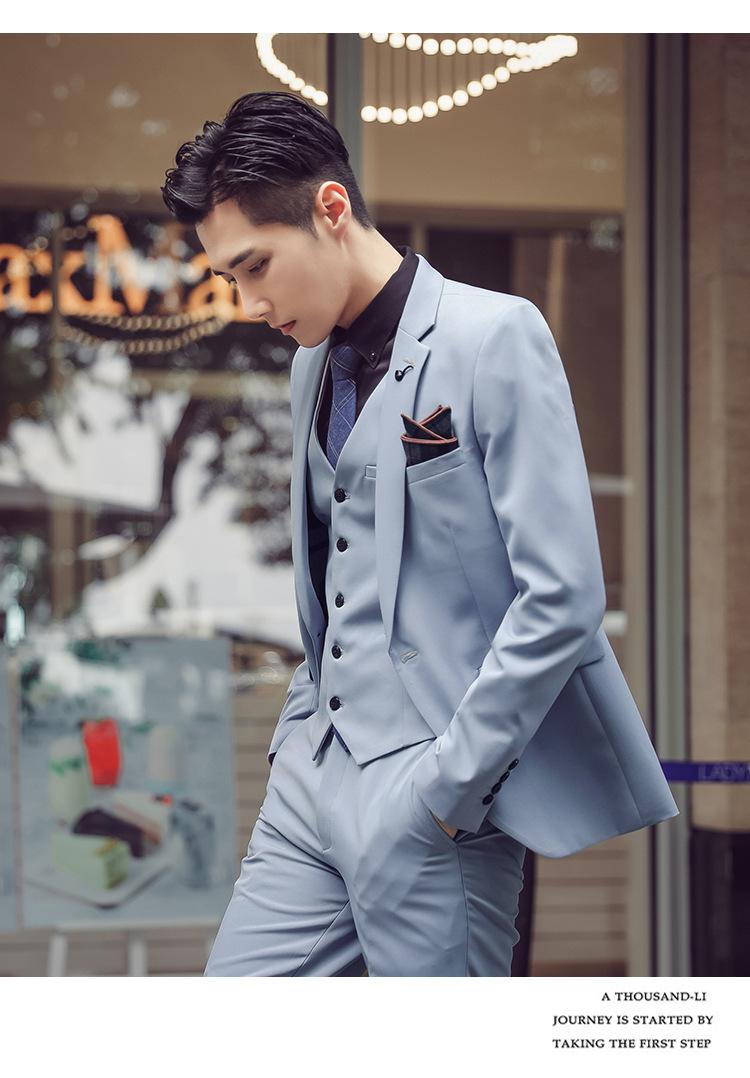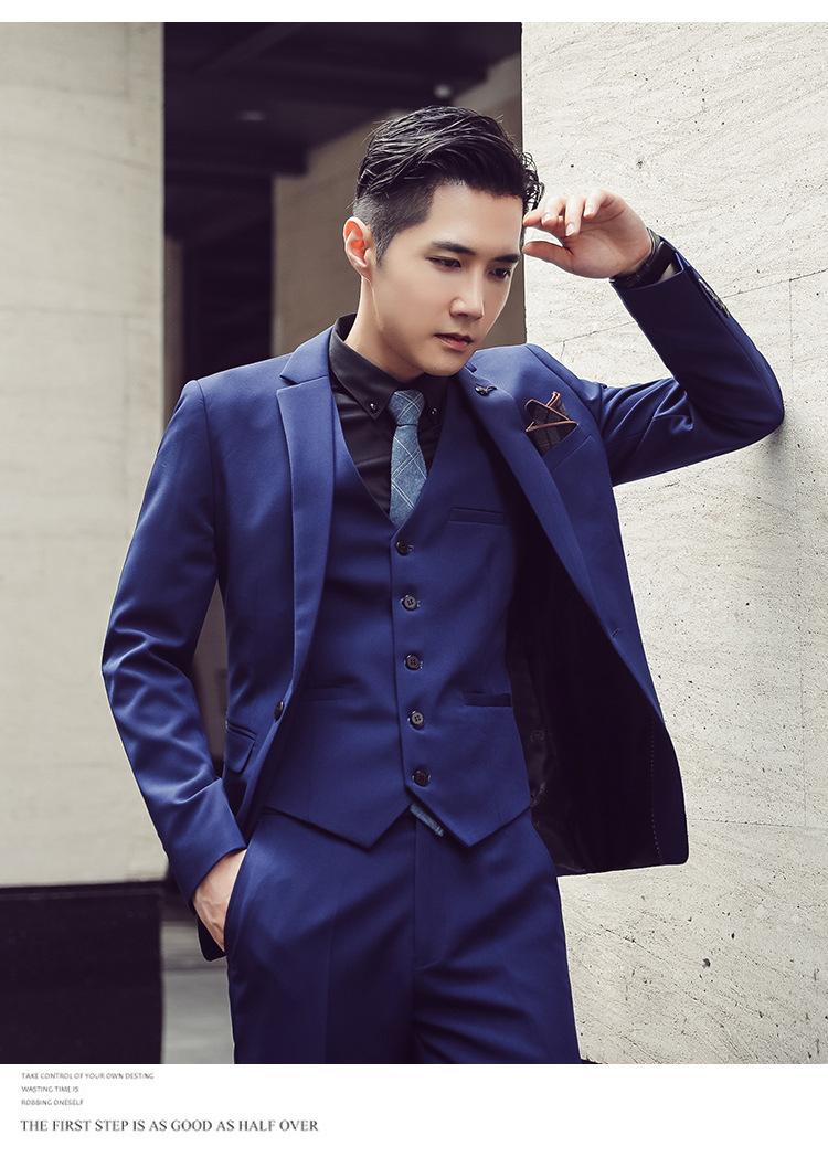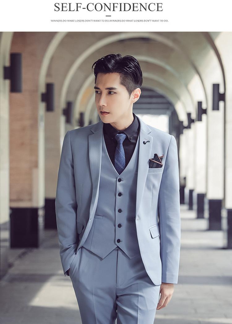 Traje de hombre de alta calidad al por mayor, traje de moda coreana para hombre, traje ajustado de color sólido, traje de hombre, vestido de noche de tres piezas