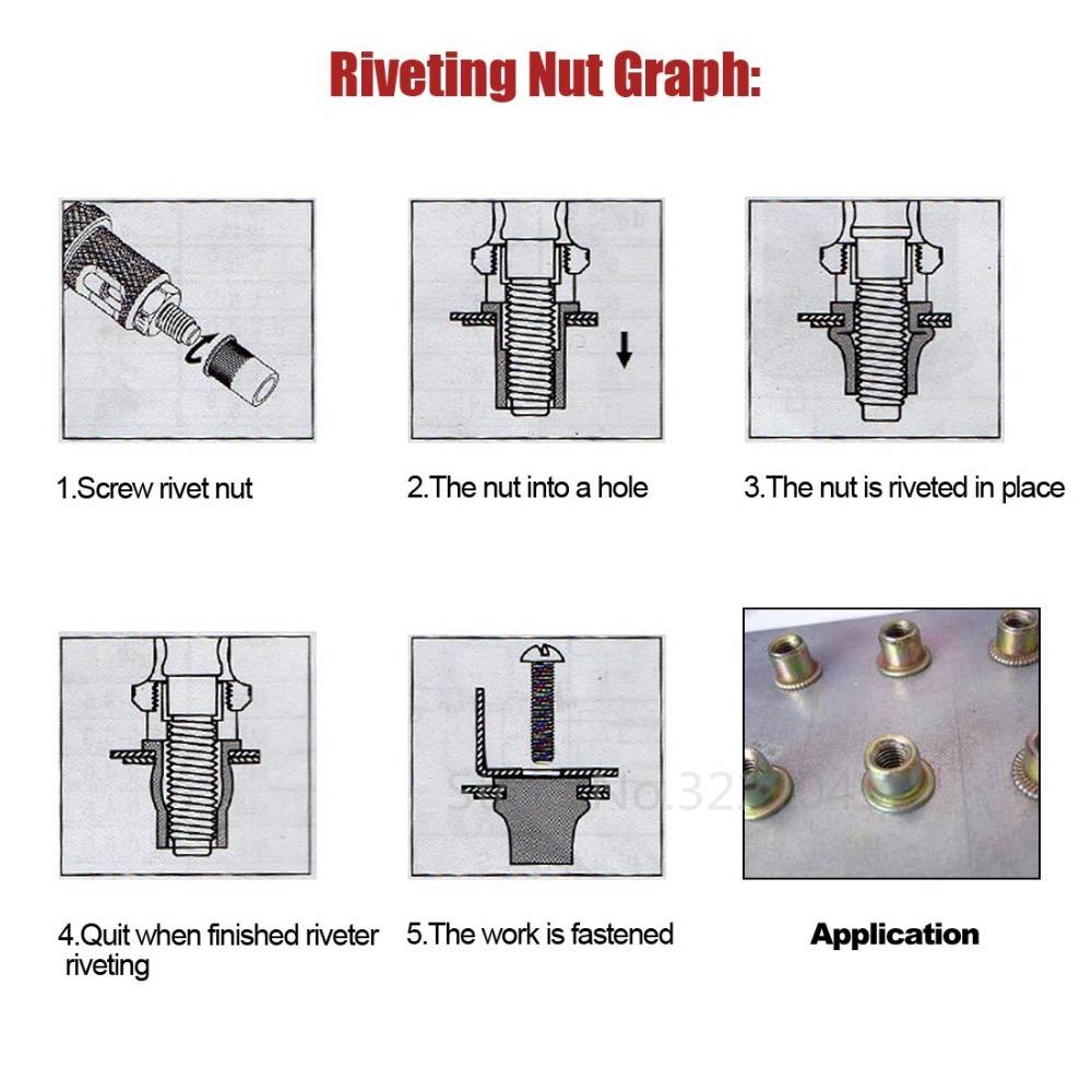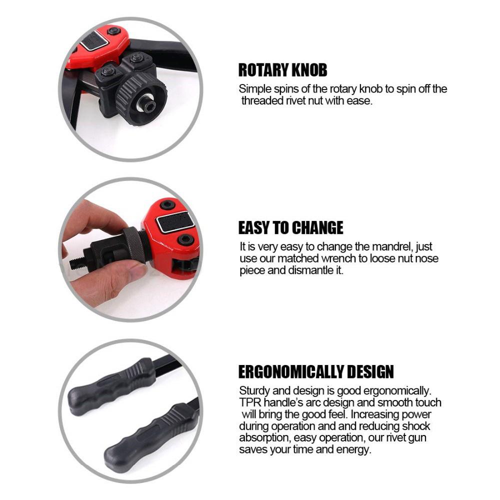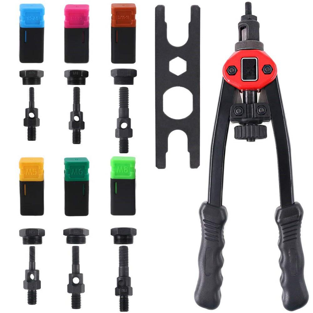 Tuerca remachadora manual Subao BT605 de 13 pulgadas, con pistola de remaches hembra Ramla, mandril de 6 pulgadas métricas de especificación.