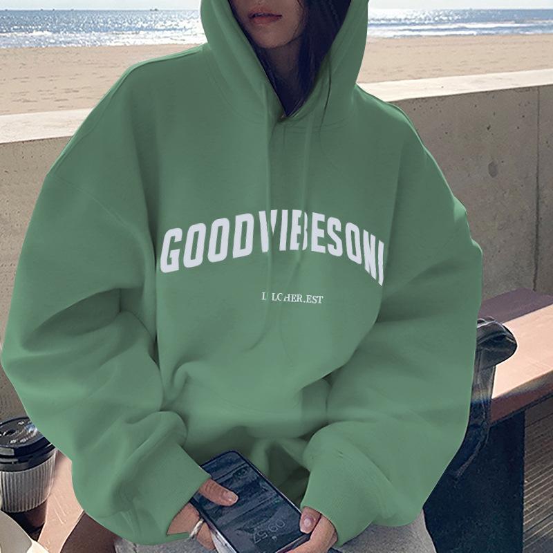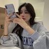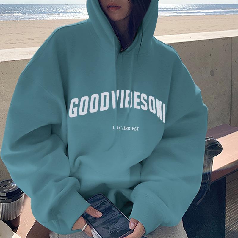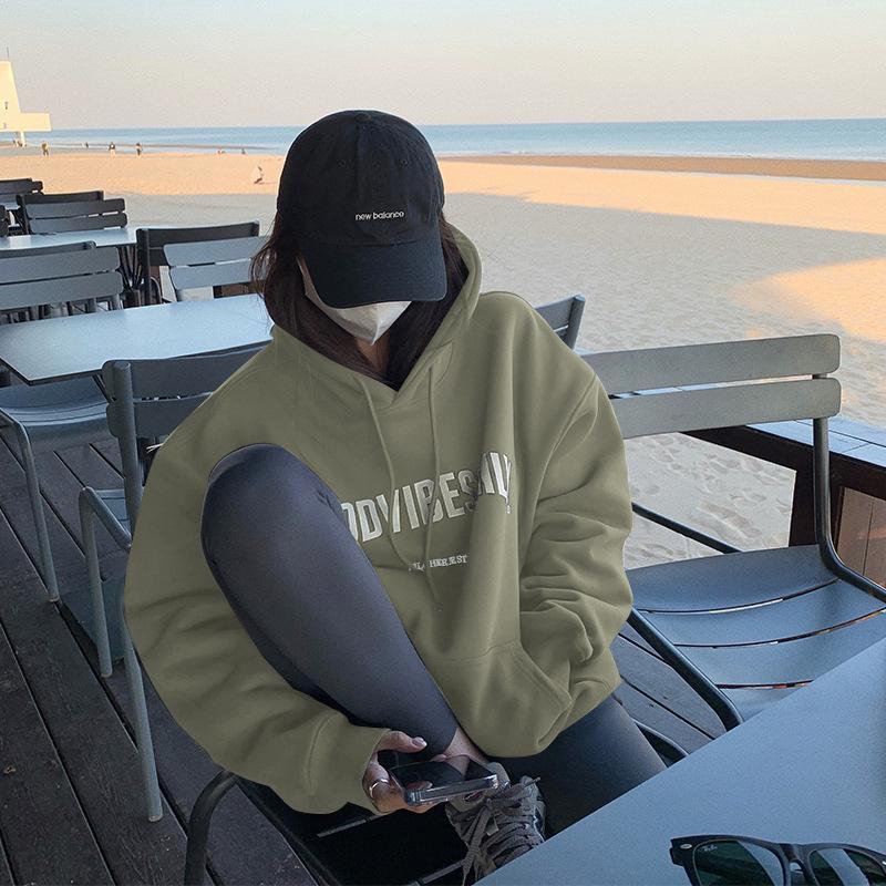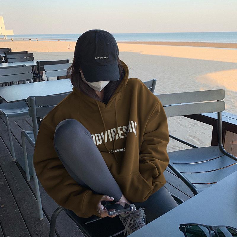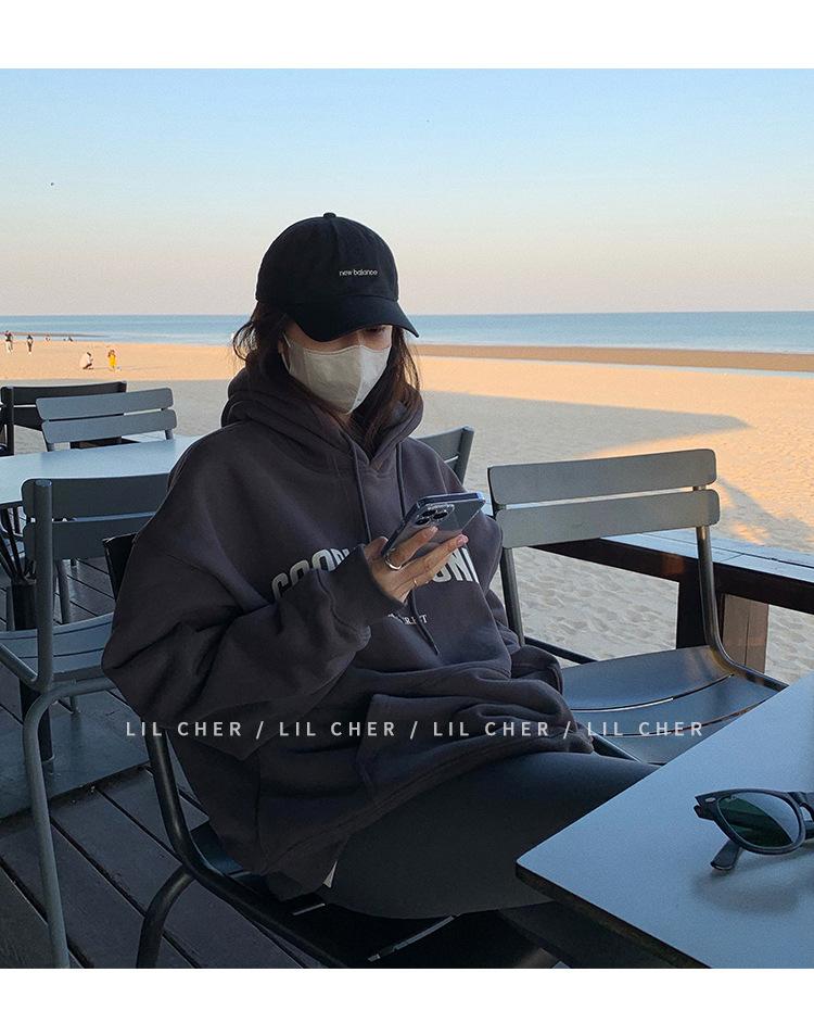 Suéter con capucha y forro polar para mujer, otoño e invierno, nuevo, estampado de letras sueltas, estilo coreano, abrigo de estudiante de moda, top de manga larga, moda