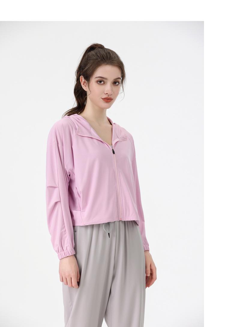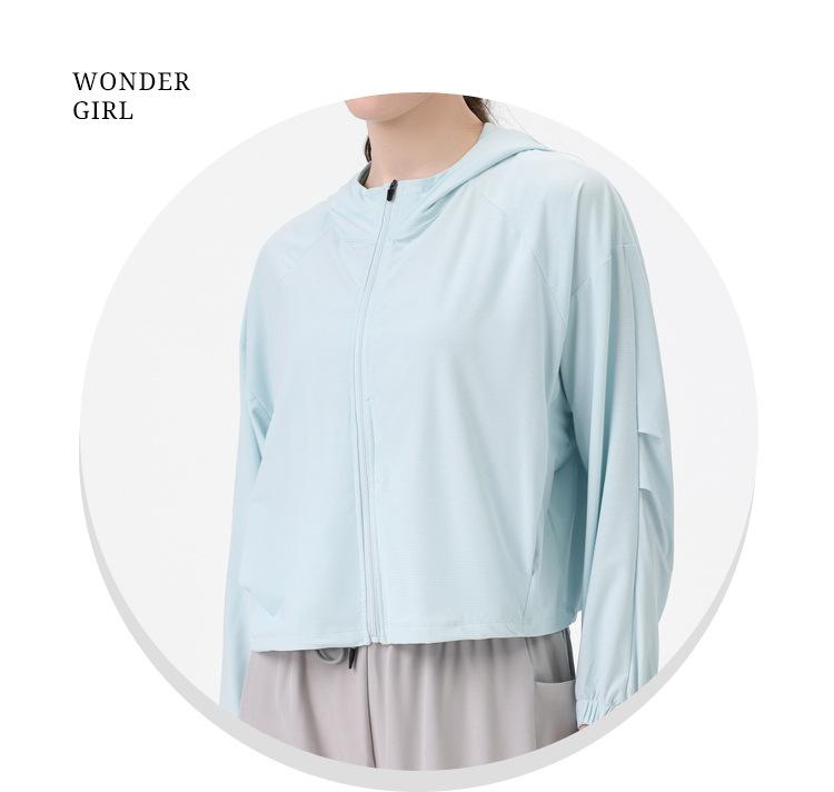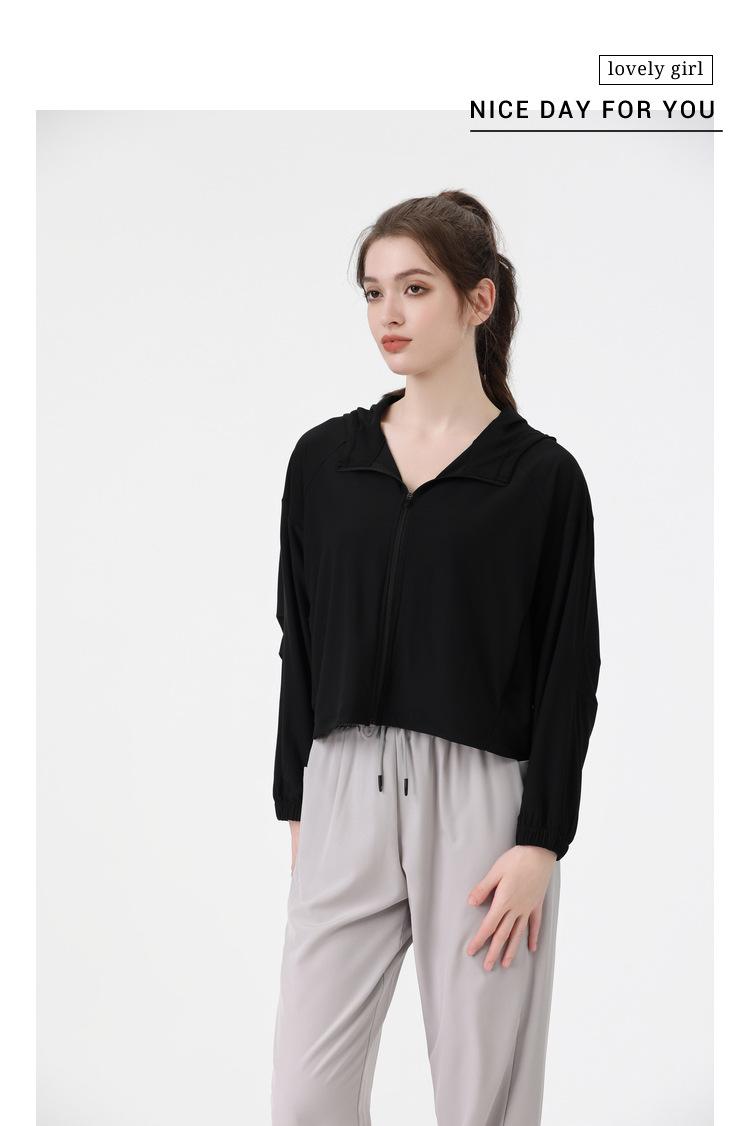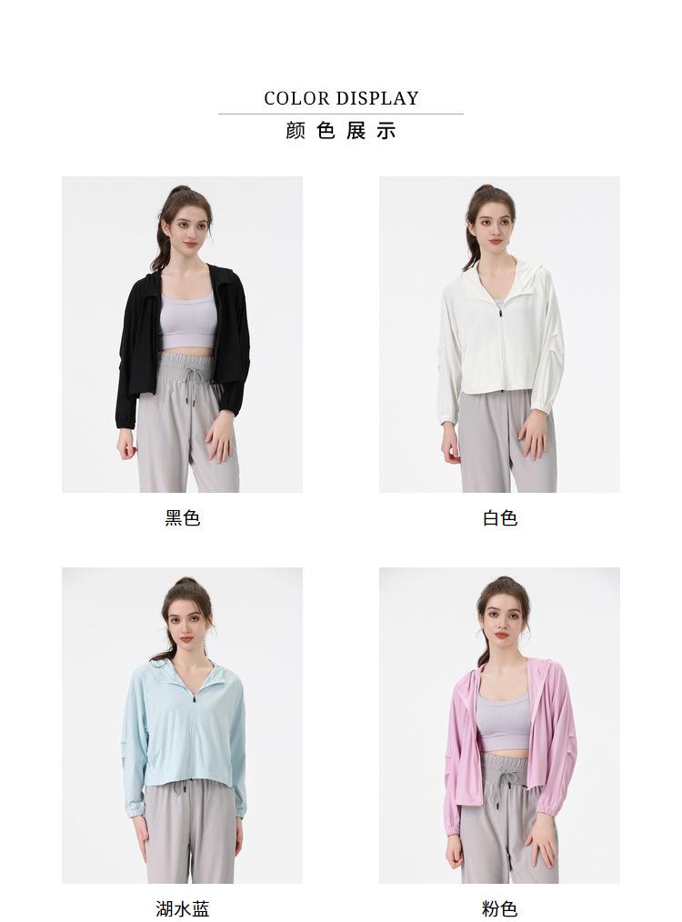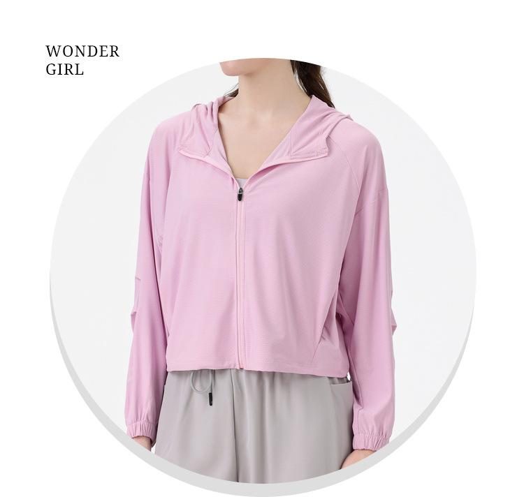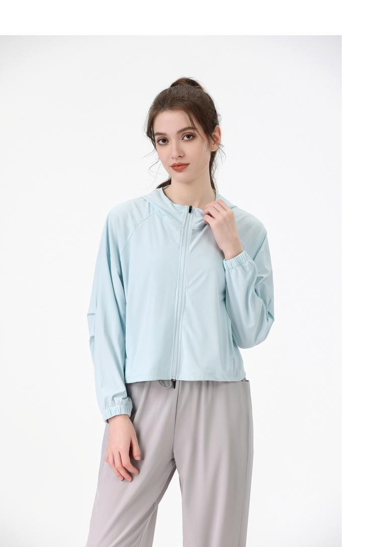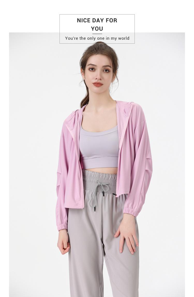 Chaqueta Deportiva de Seda de Hielo de Verano para Mujer, Holgada, Transpirable, con Cremallera, Ropa de Fitness, Top de Yoga Antisolar, Ropa Antisolar para Exterior