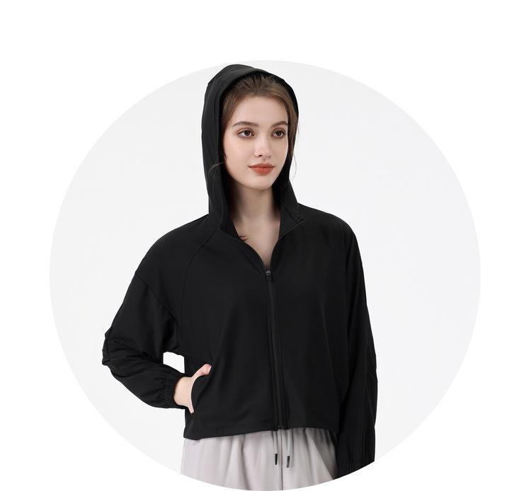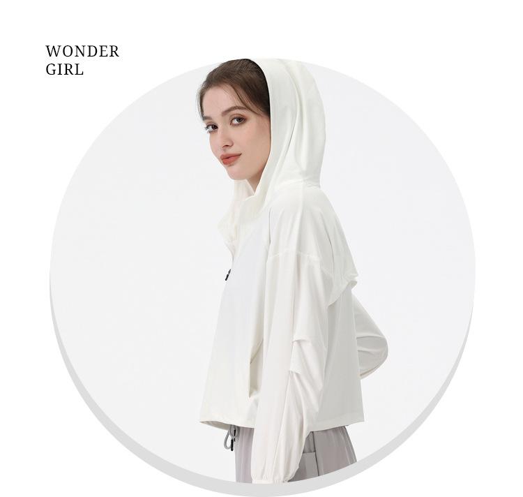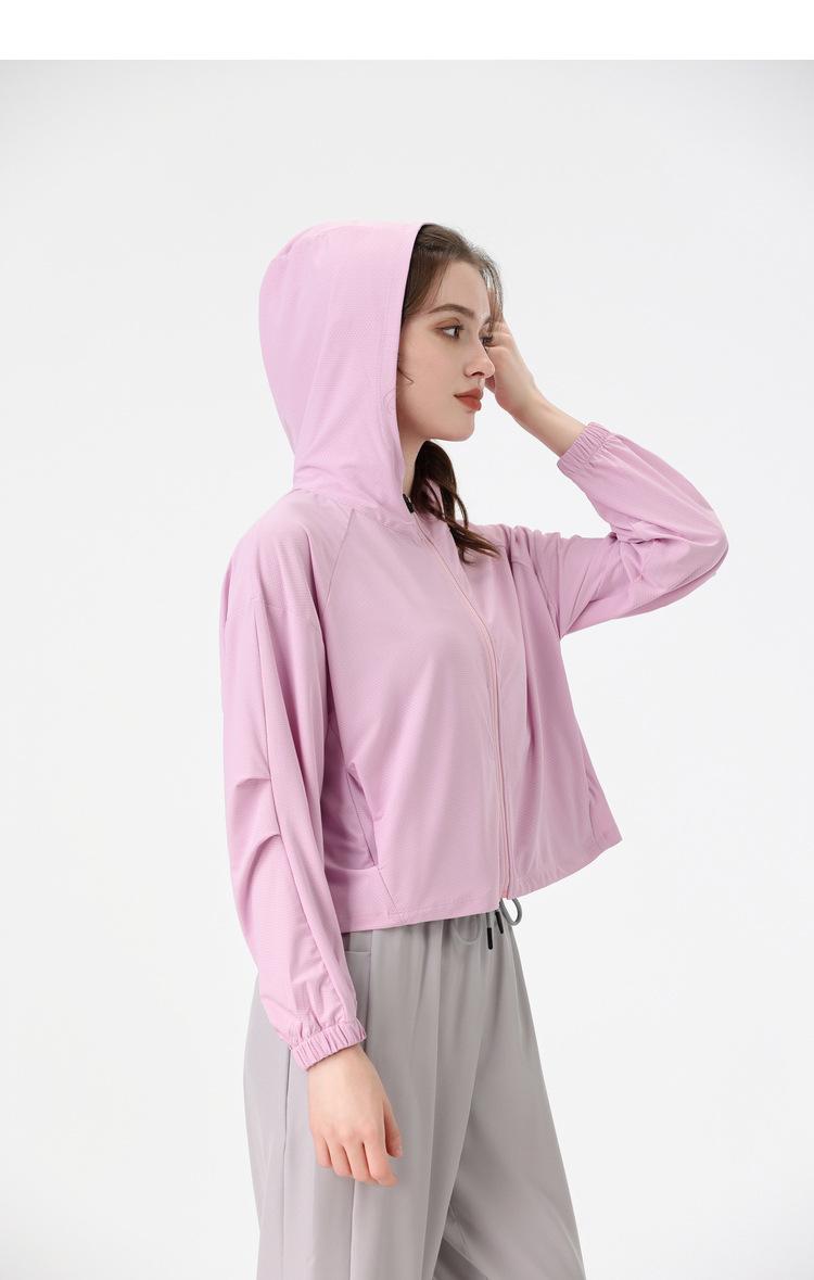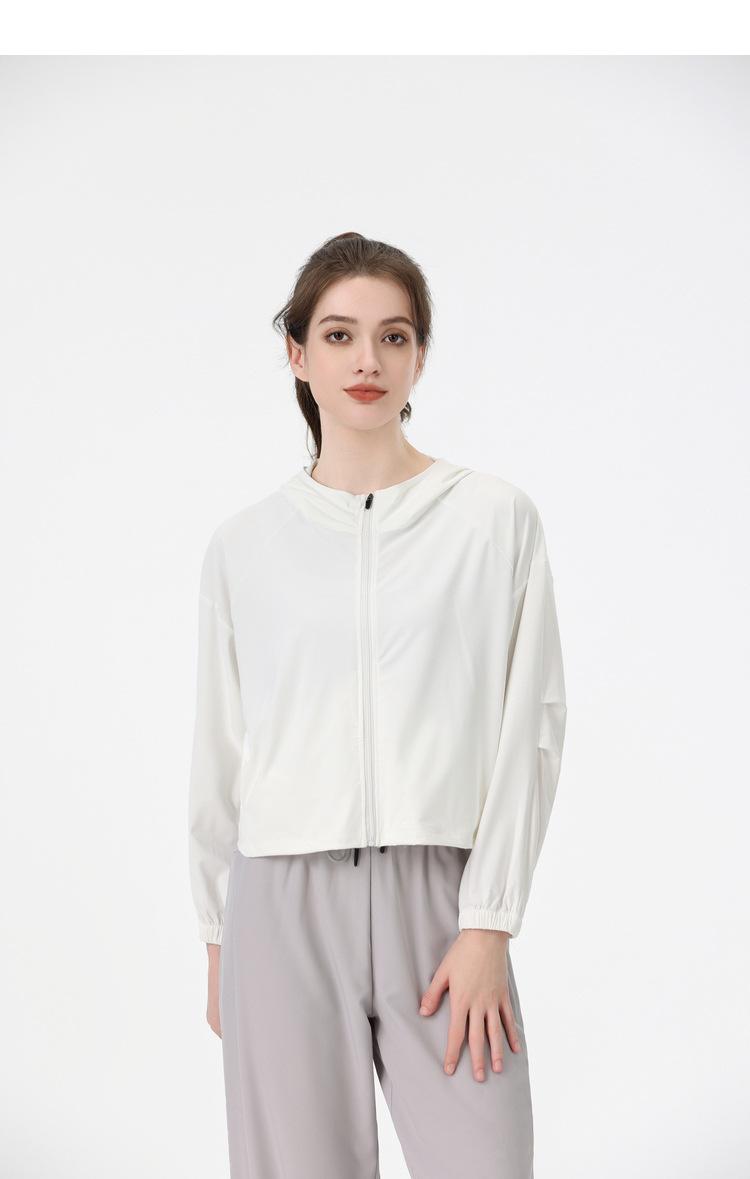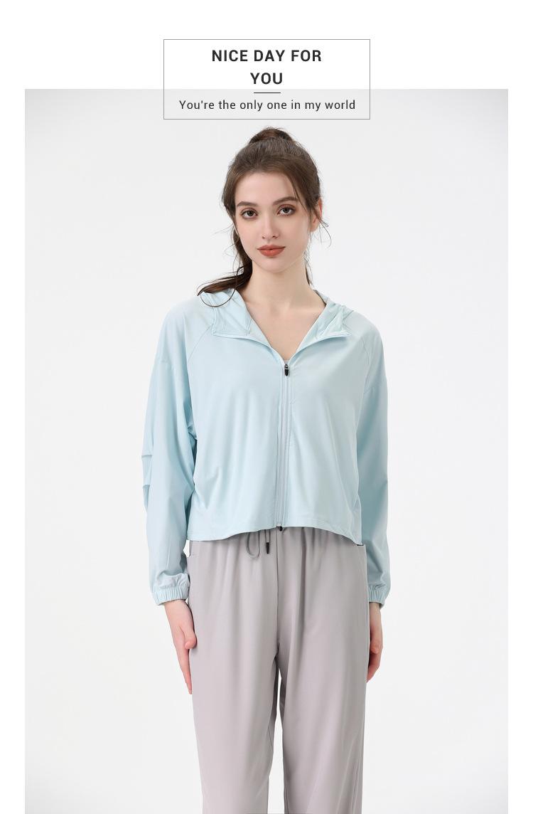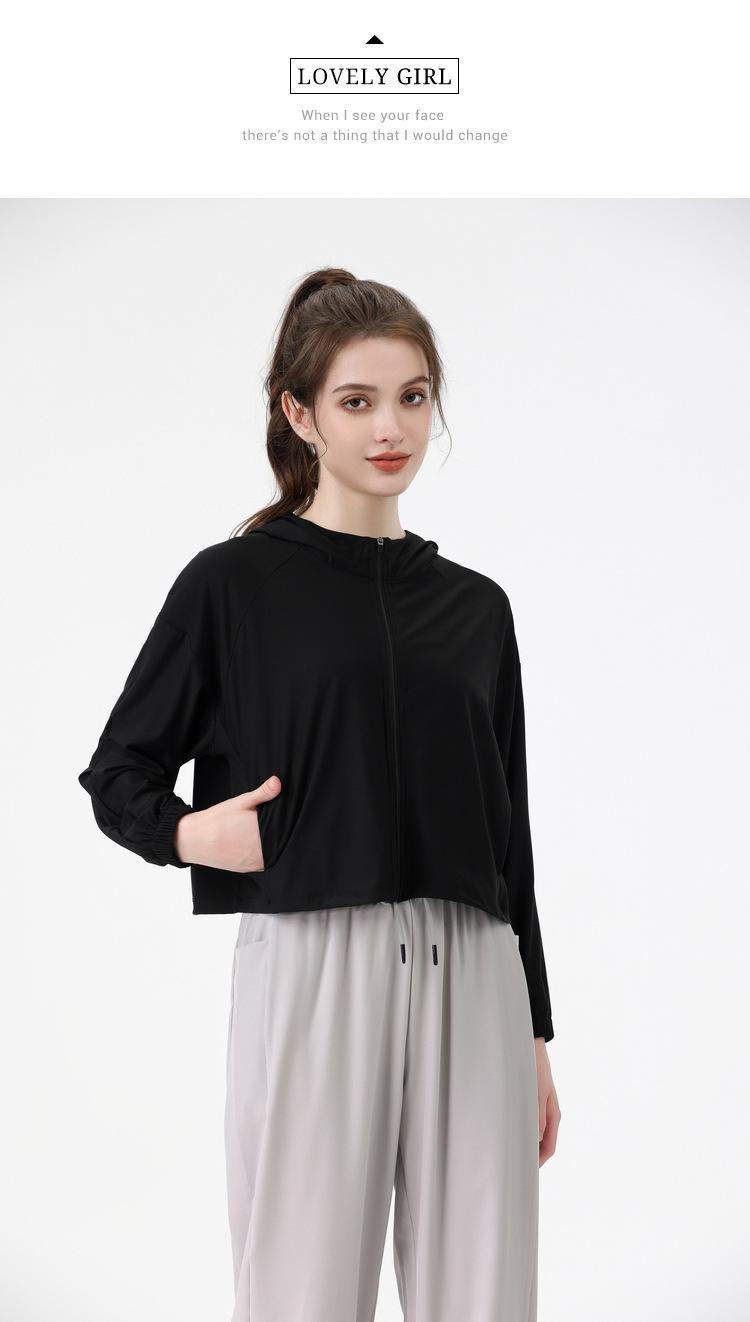 Chaqueta Deportiva de Seda de Hielo de Verano para Mujer, Holgada, Transpirable, con Cremallera, Ropa de Fitness, Top de Yoga Antisolar, Ropa Antisolar para Exterior