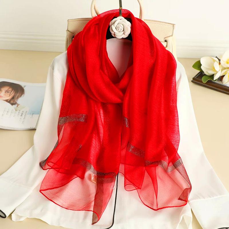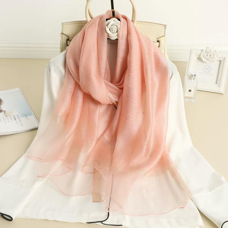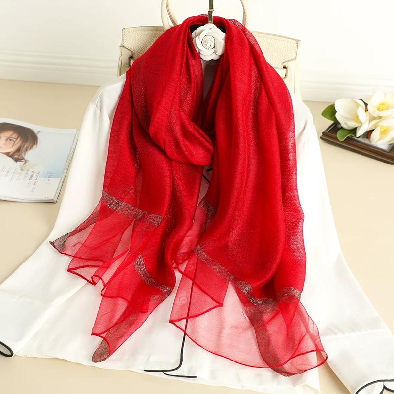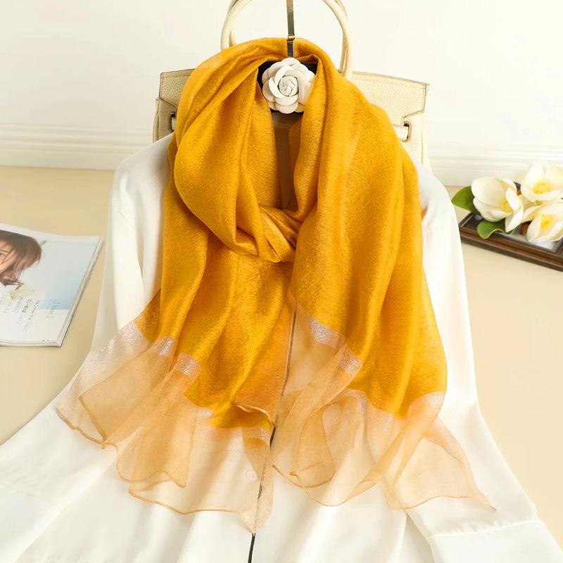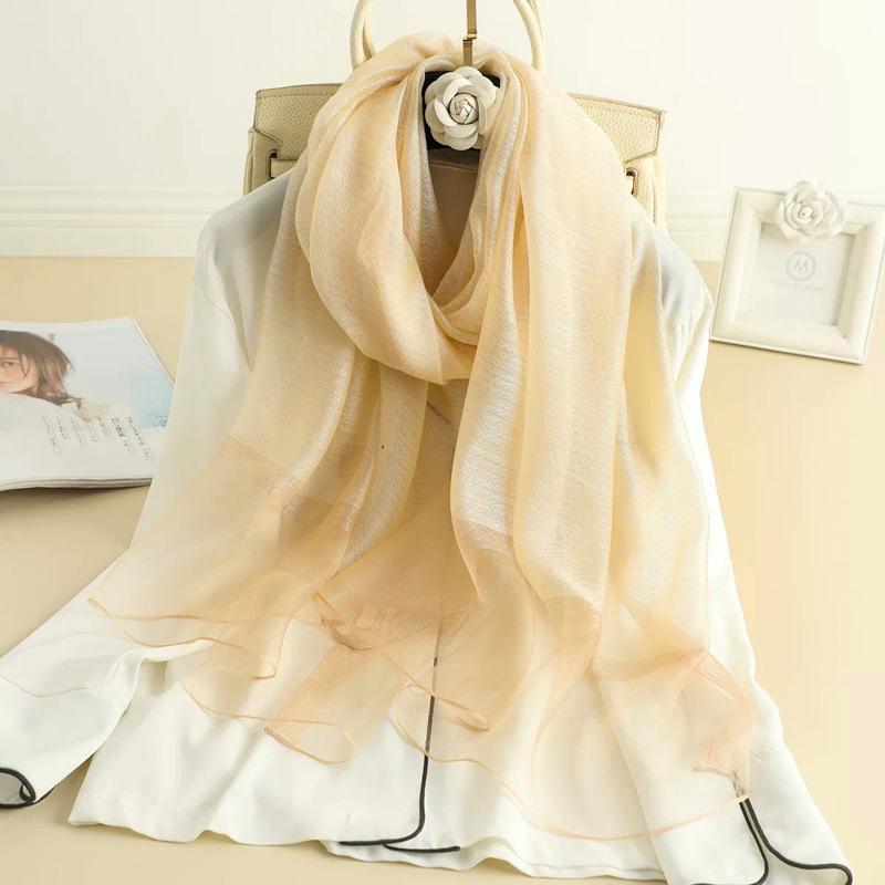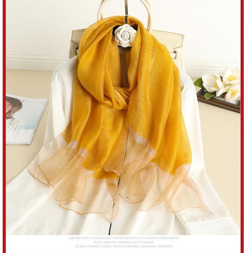 Bufanda Nueva de Color Sólido para Mujer, Bufanda de Seda Imitación a la Moda, Bufanda Larga Versátil de Gasa de Seda Estilo Madre para Primavera y Otoño al Mayoreo