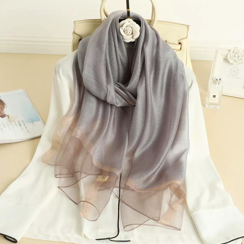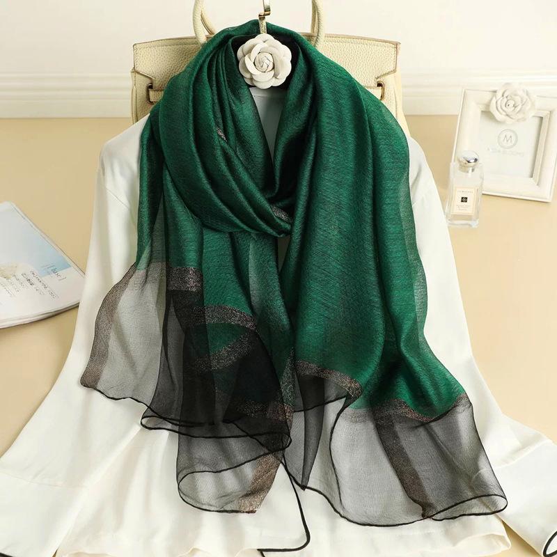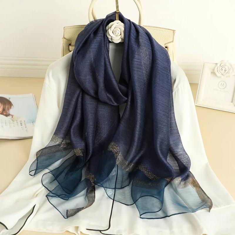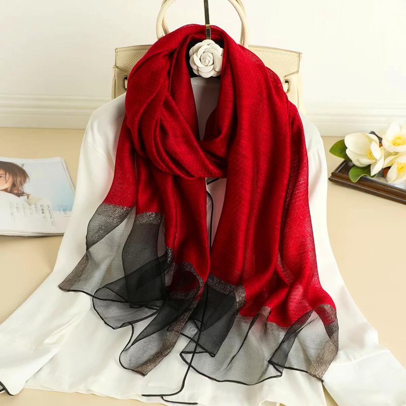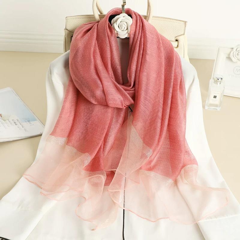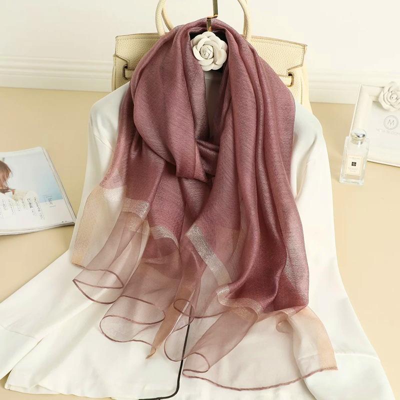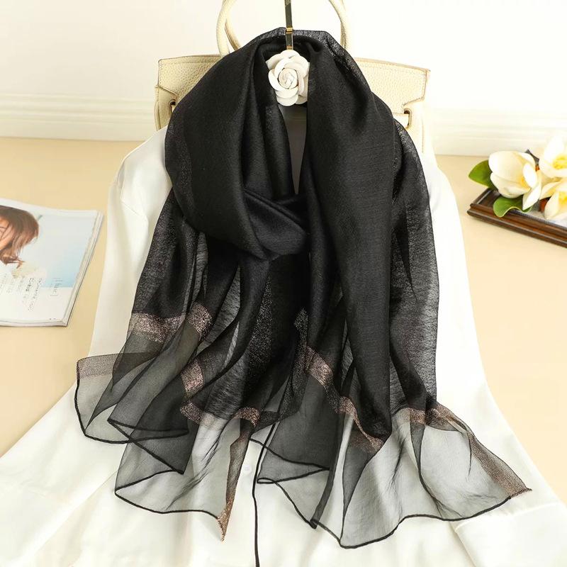 Bufanda Nueva de Color Sólido para Mujer, Bufanda de Seda Imitación a la Moda, Bufanda Larga Versátil de Gasa de Seda Estilo Madre para Primavera y Otoño al Mayoreo