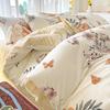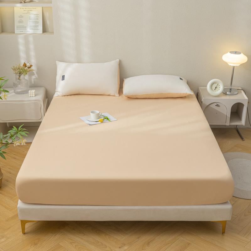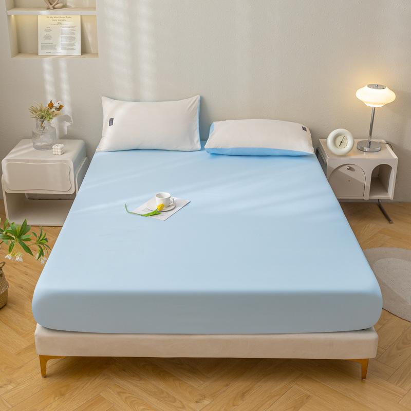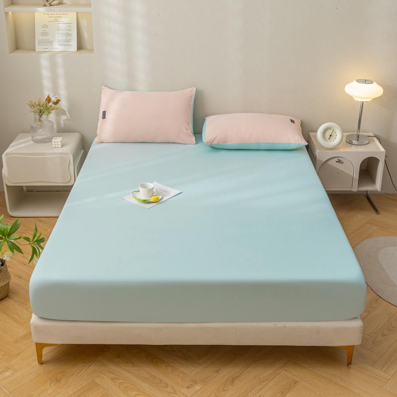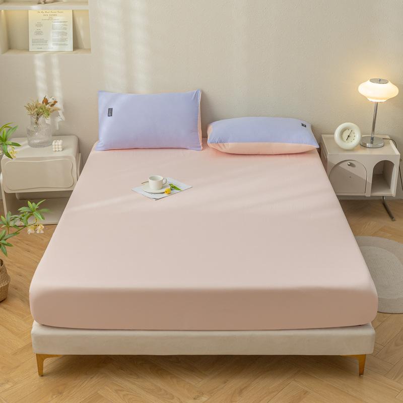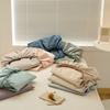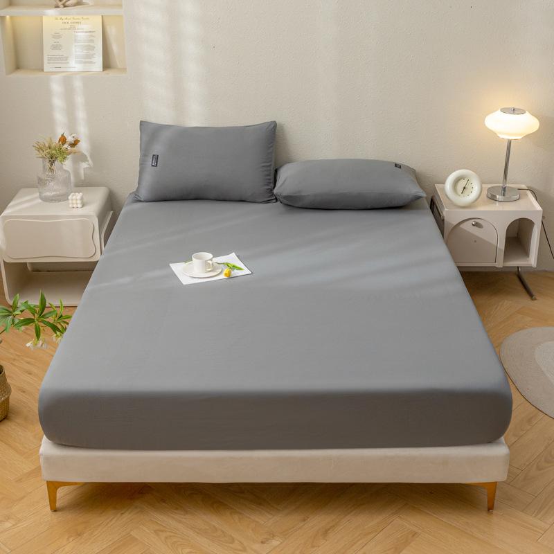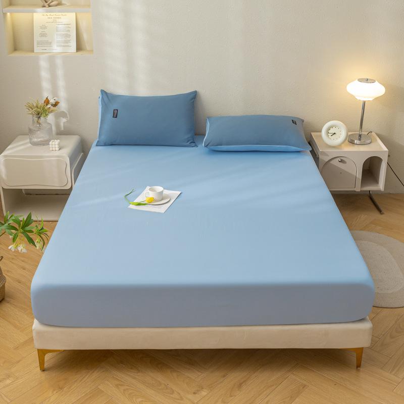 Sábana ajustable de algodón lavado simple de una sola pieza, colcha de algodón puro de color liso, sábana antideslizante, funda de almohada de algodón fija, juego de tres piezas