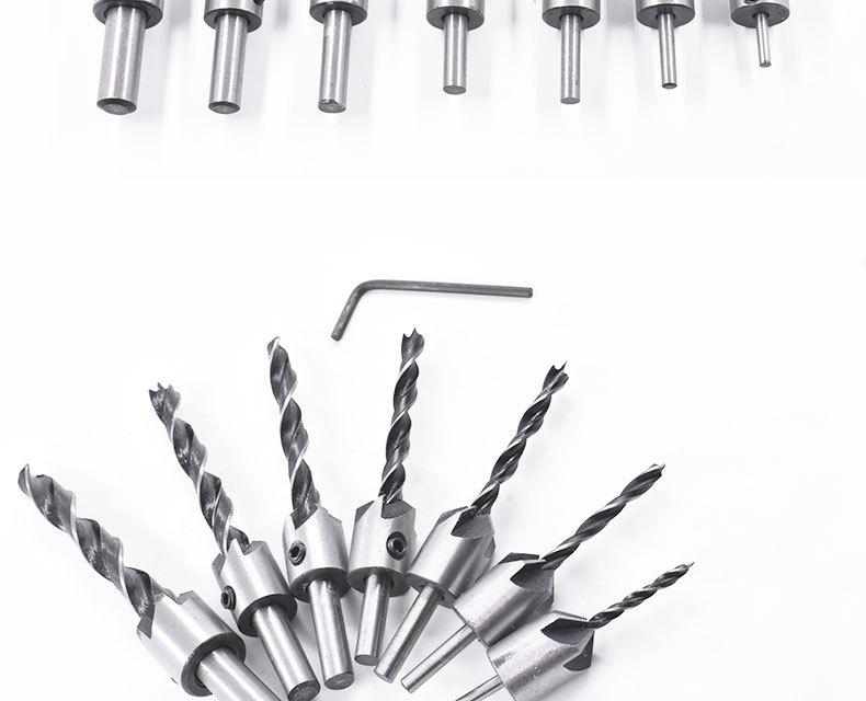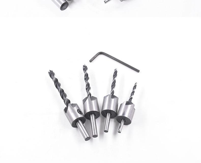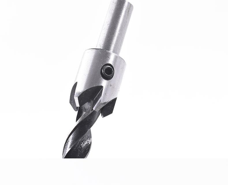 [Características del producto]: El chaflán tiene cinco hojas. Durante el uso, puede descargar virutas de madera más rápidamente, perforar agujeros avellanados suaves y planos de una sola vez, e incrustar las cabezas de los tornillos en la superficie de la pieza de trabajo.