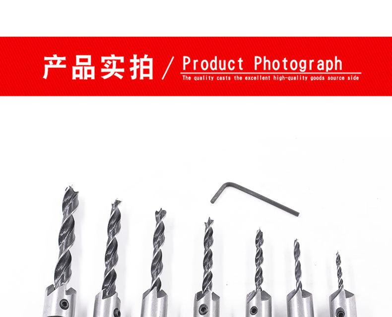[Material del producto]: La broca para madera de tres puntas está hecha de acero de alta velocidad 4241, y el cuerpo de la broca achaflanadora central está hecho de acero n.º 45