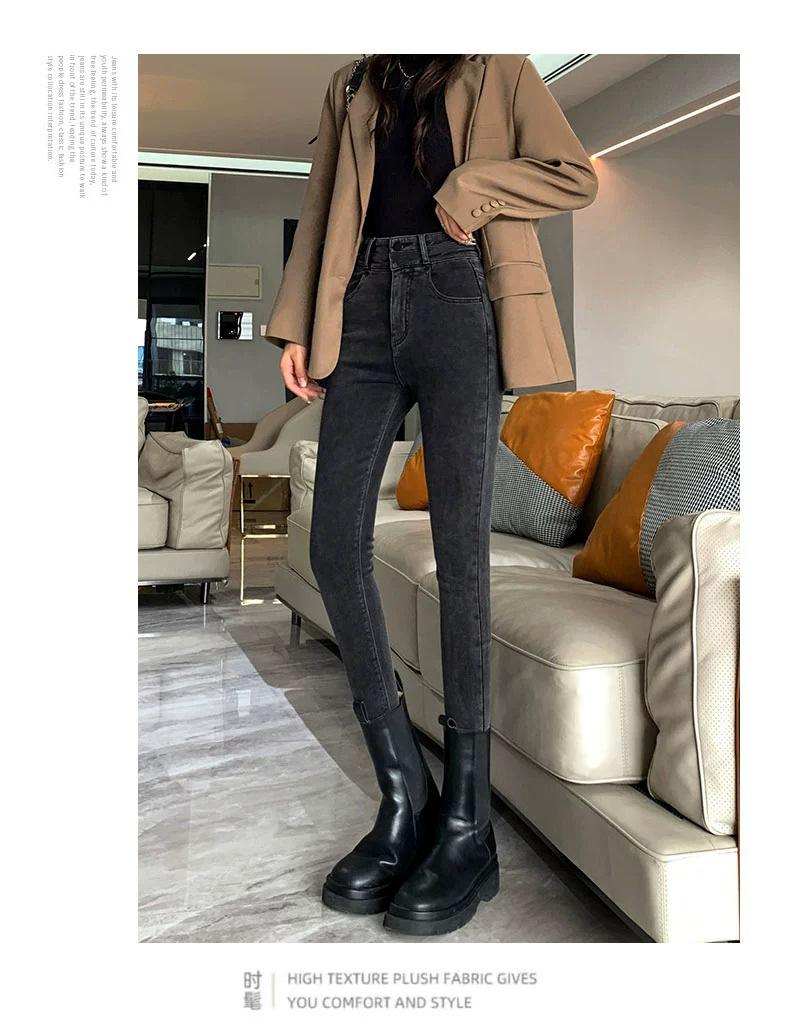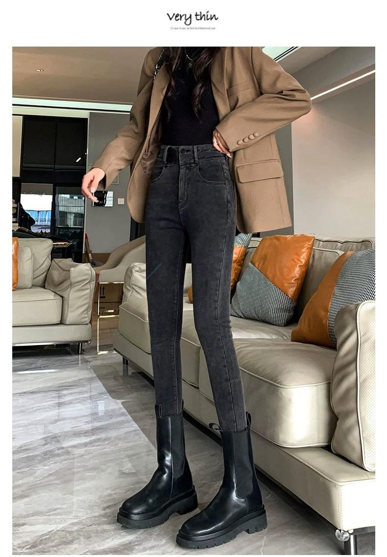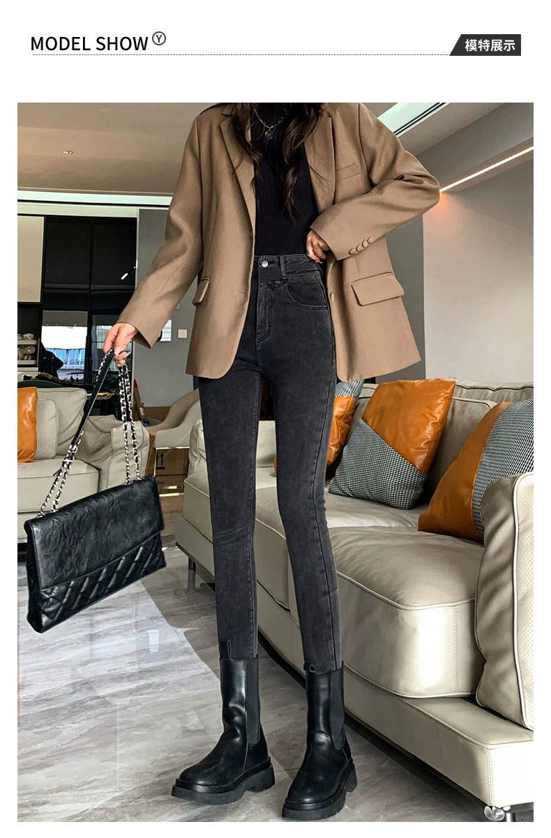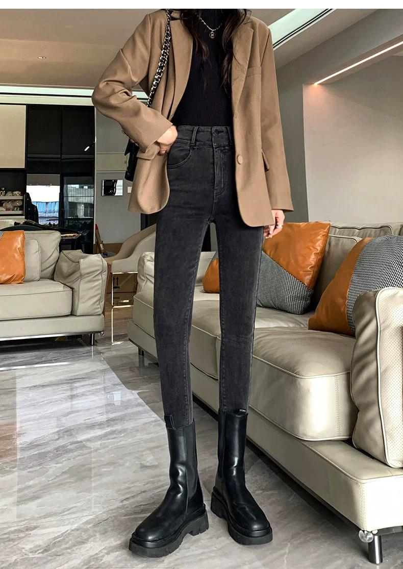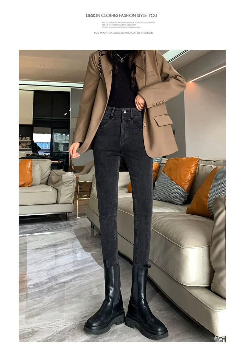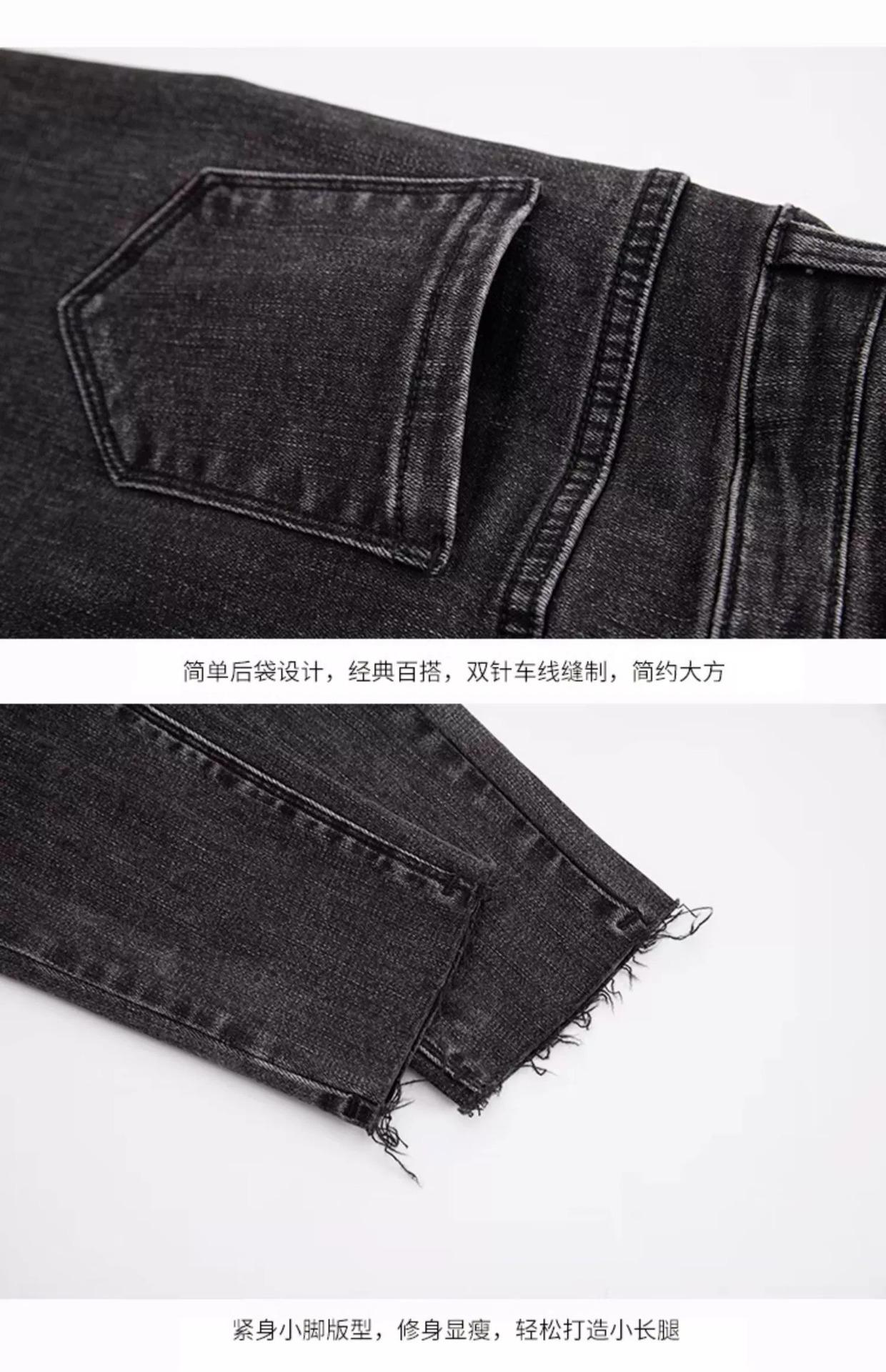Primavera 2024 nuevos jeans negros de mujer cintura alta adelgazantes versátiles elásticos pantalones lápiz