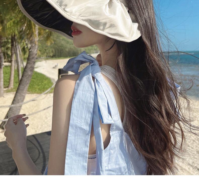 Sombrero de sol con protección UV para mujer, sombrero de verano con protección UV, sombrero de pescador con parte superior vacía, sombrero rojo de red.
