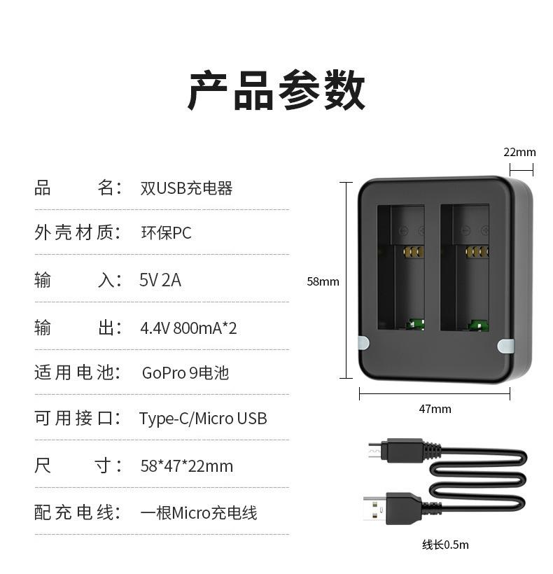 Adecuado para cámara deportiva con cargador dual GoPro 9/10/11/12, decodificación de batería, carga rápida, batería sin ventana emergente
