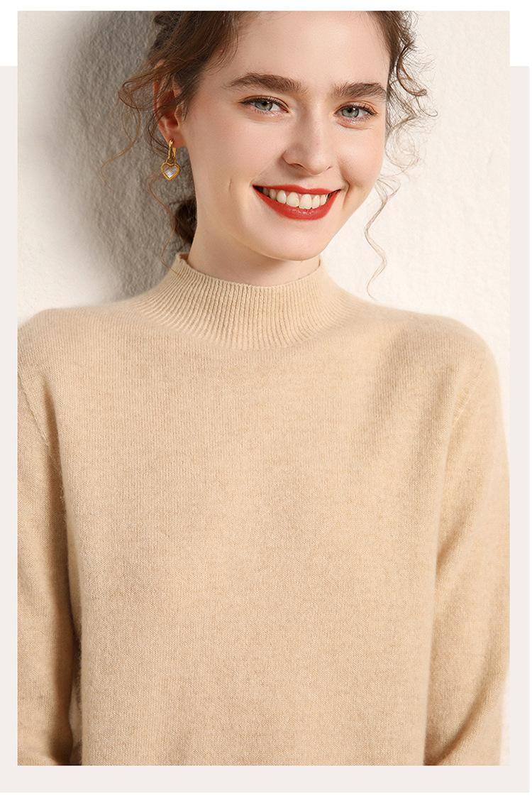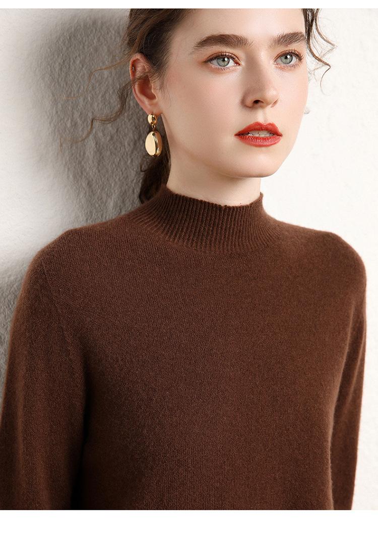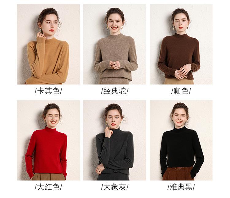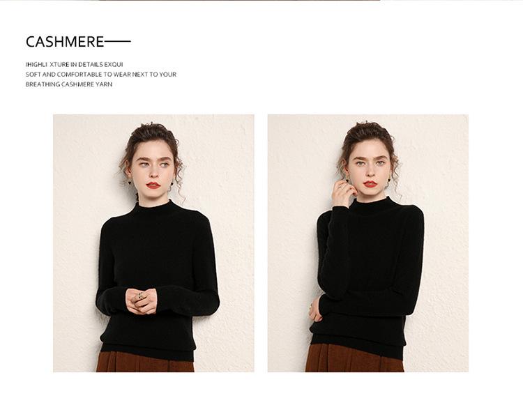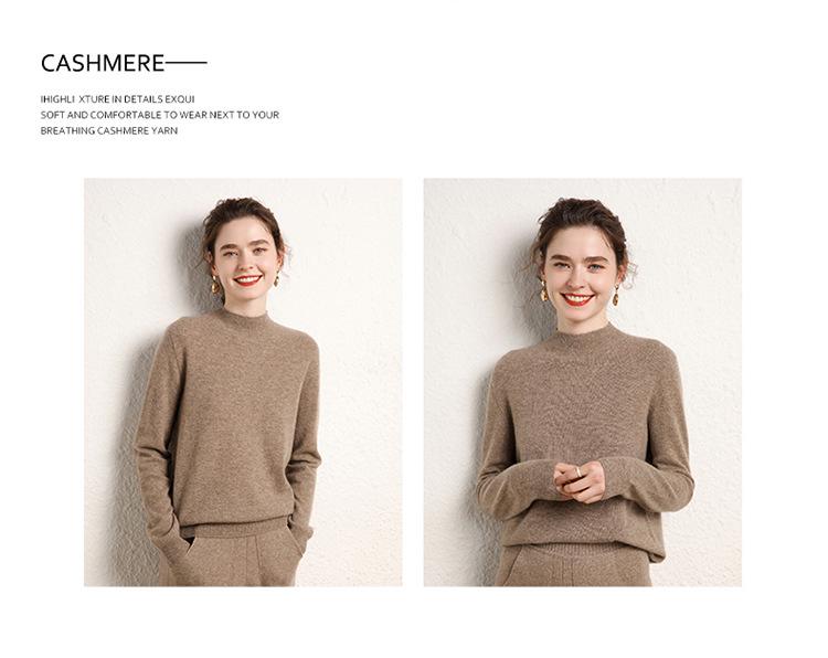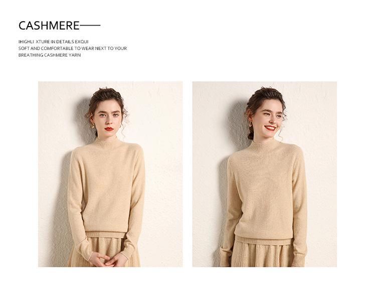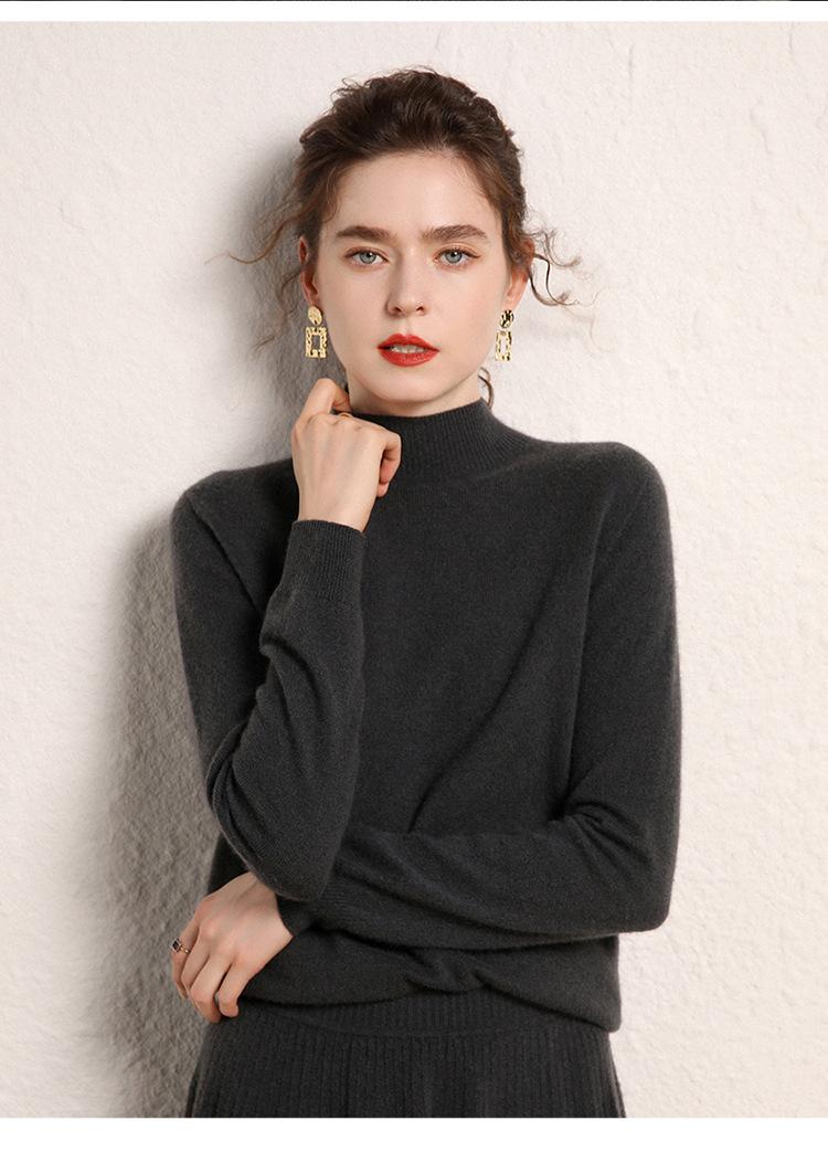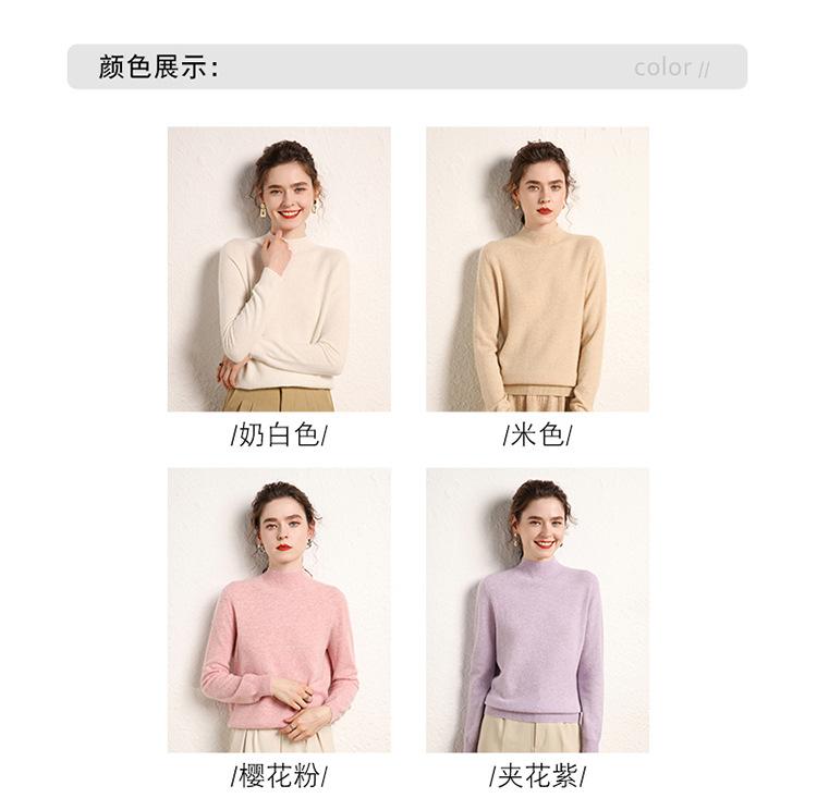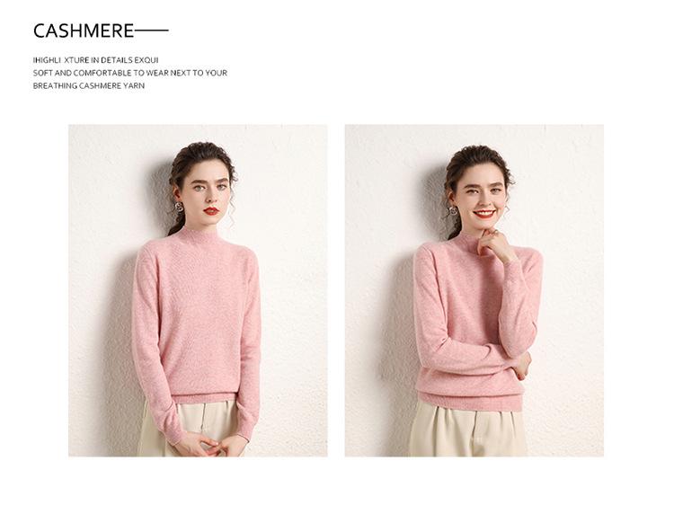 Suéter de cachemira de cuello alto medio para mujer, otoño e invierno, nuevo, versátil, con parte superior interior, suéter holgado y adelgazante.