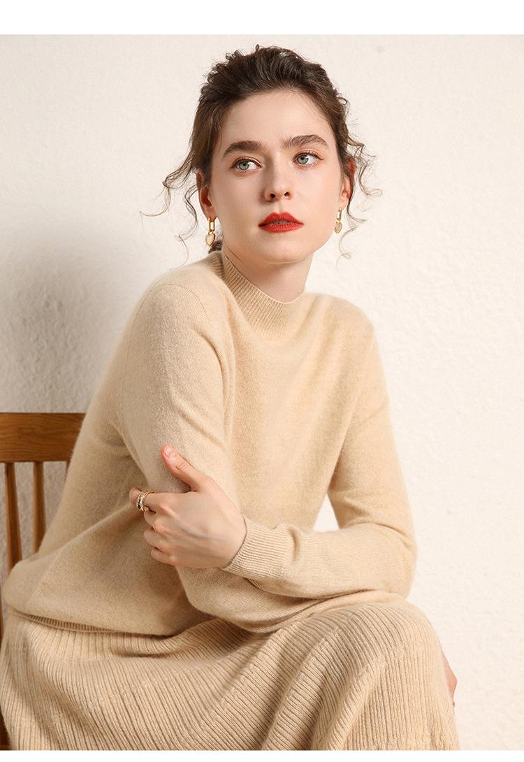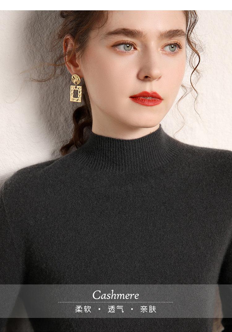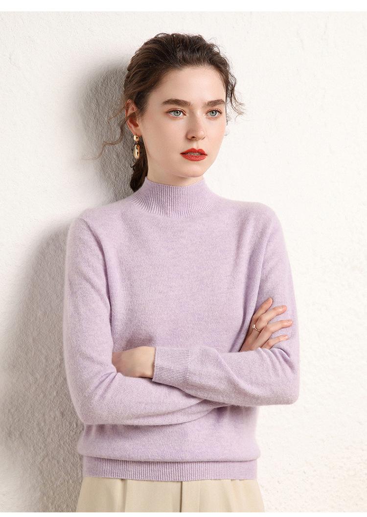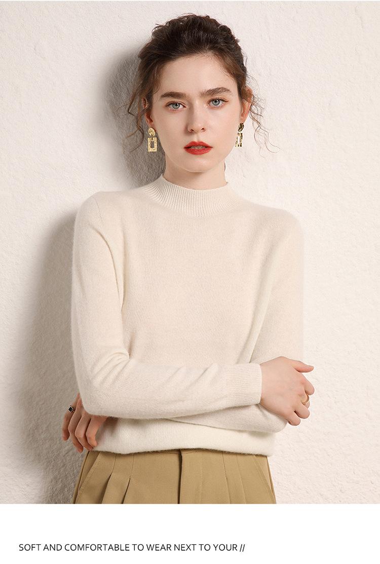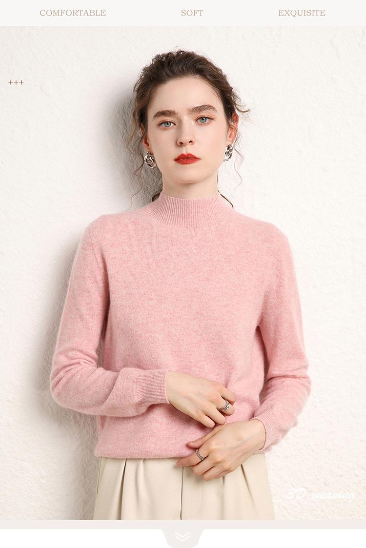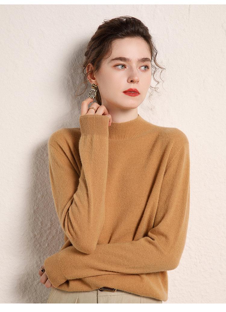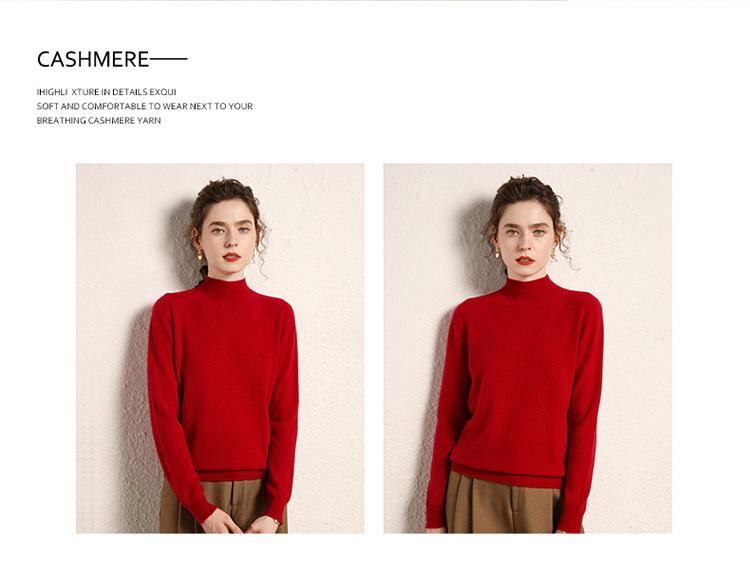 Suéter de cachemira de cuello alto medio para mujer, otoño e invierno, nuevo, versátil, con parte superior interior, suéter holgado y adelgazante.