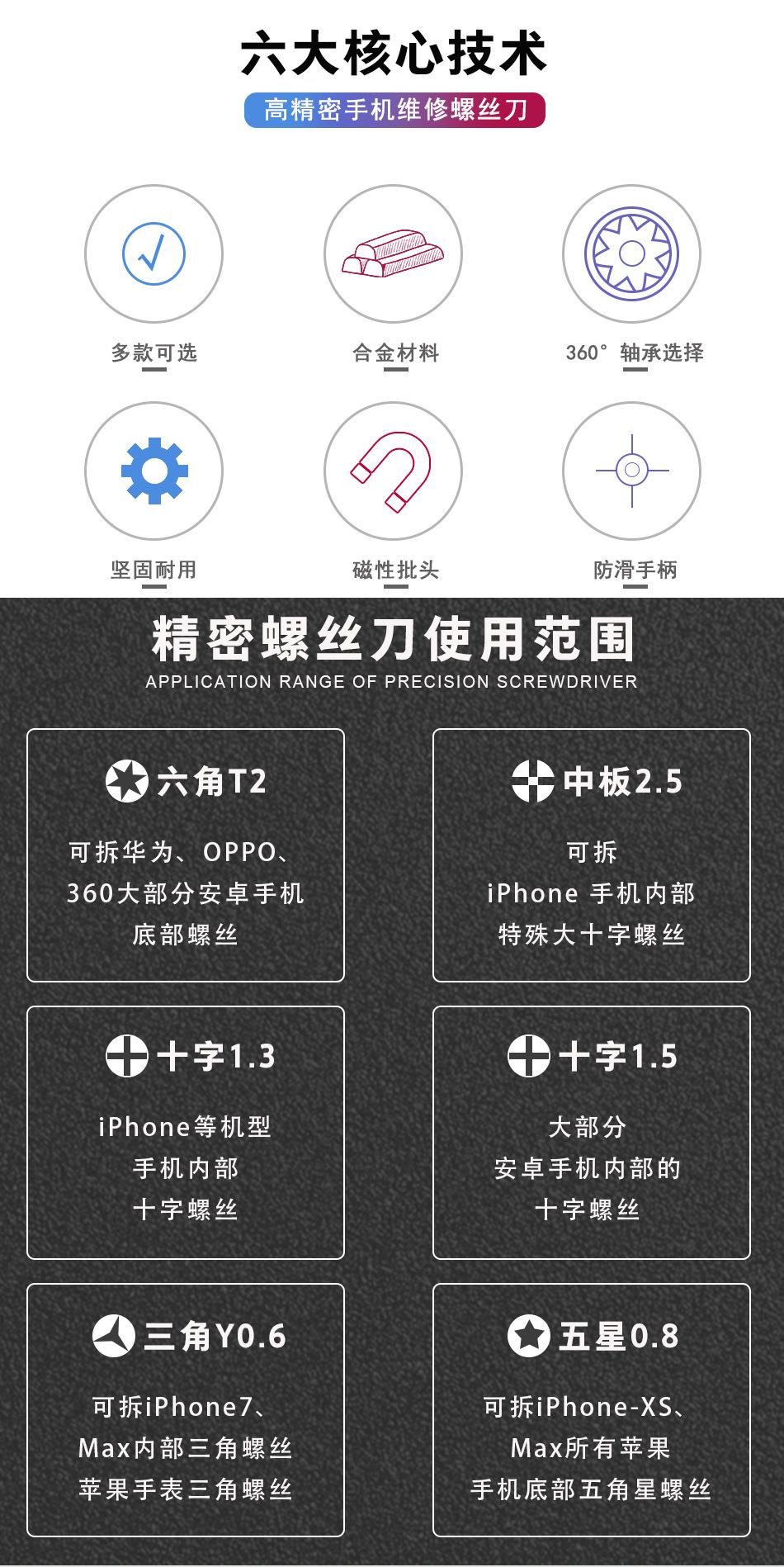*Adecuado para Herramientas de Reparación de Teléfonos Móviles Apple Destornillador Hueco de Cruz Rodamiento Silencioso de Tapa Trasera Y0.6 Estrella de Cinco Puntas